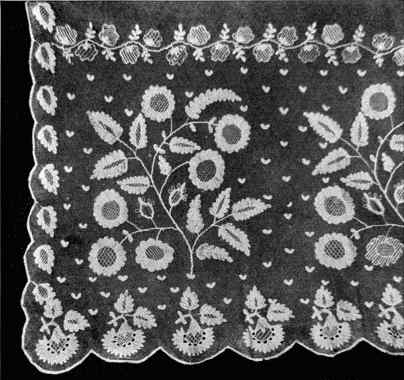 It is interesting to note that it had no place in aboriginal embroidery, and marks its creation as following the art of weaving. It is a long step from this traditional past of its origin to the short past of the stitchery of America, where the little fingers of small Puritan maids followed the lines evolved by the generations of the earlier world.