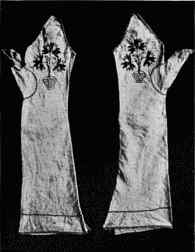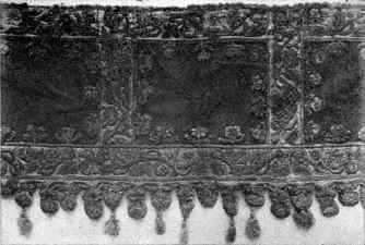 But as we do not make the early art of long existent races models upon which to shape our search for the most beautiful, the persistence of Eastern form in embroidery need not prevent our progress in design. I made an interesting note of this persistence of Eastern design, when, many years ago, I had an opportunity of examining some mummy wrappings from a burial ground at [142] Lima, Peru. They were wonderful weavings of aboriginal cloth, bordered with embroidery done in dyed or colored threads of flax, in designs as purely Eastern as can be found in any ancient or modern Eastern embroidery. How could it happen that the ornamental designs of the Far East and the Far West should touch each other? Was it similarity of thought knowledge, the kinship of the human mind, or some long-forgotten means of transmission of the material and actual, of which we all-knowing moderns do not even dream? This wonderful South American embroidery of past ages antedated many antique remains of the art of stitchery which we treasure with as wide a margin of time as lies between their day and ours.