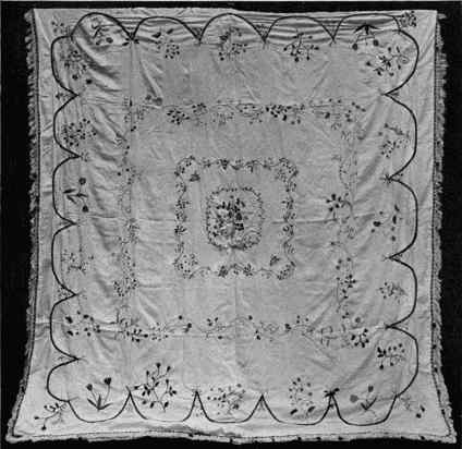 The embroidered chair and sofa covers had quite the effect of tapestries, and were far better than a not uncommon variation of the same needlework, where the broadcloth or velvet background held the embroidery.
