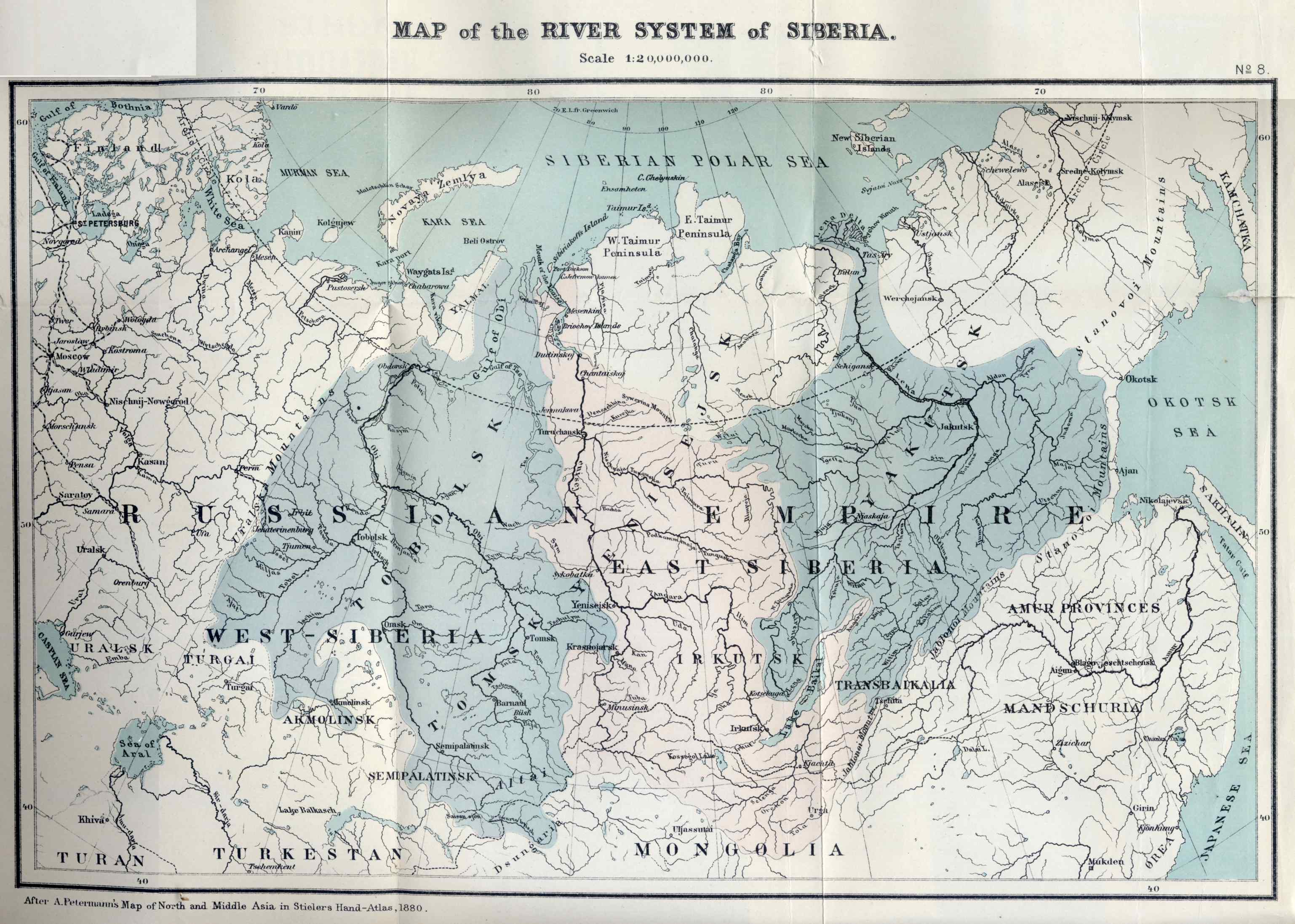 The voyage of the Fraser and the Express up the Yenisej and their return to Norway—Contract for the piloting of the Lena up the Lena river—The voyage of the Lena through the delta and up the river to Yakutsk—The natural state of Siberia in general—The river territories—The fitness of the [pg xv] land for cultivation and the necessity for improved communications—The great rivers, the future commercial highways of Siberia—Voyage up the Yenisej in 1875—Sibiriakoff's Island—The tundra—The primeval Siberian forest—The inhabitants of Western Siberia: the Russians, the Exiles, the "Asiatics"—Ways of travelling on the Yenisej, dog-boats, floating trading stores propelled by steam—New prospects for Siberia.