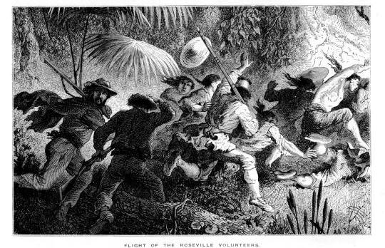 I was very glad when at last the buildings of Roseville appeared in sight; though somewhat annoyed when Captain Nockelles ordered me to remain with the main body, while he took his prisoner, under charge of a guard, before Judge Shurtleff. I begged to go likewise, urging that there was no possible reason why I should remain behind, when I had not even a command in the regiment. At last, not having the face longer to refuse me, he consented, and I followed the party which had gone on before.
