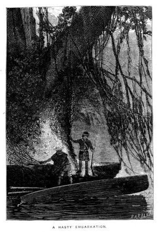 “Keep up with us, Maurice,” shouted my father; “I took a look around just as I came away, and caught sight of several objects in the distance, which I feel pretty sure are canoes. The Indians have evidently brought them down.”