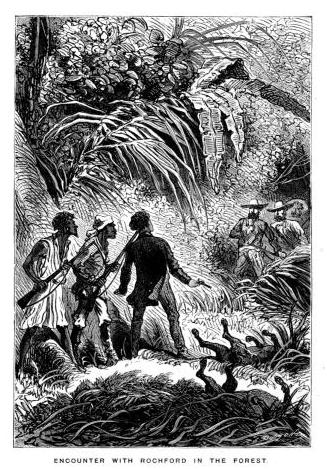 “A friend!” answered the stranger, stepping forward, when what was my surprise to recognise Rochford, though no longer in hunter’s guise, but dressed as he was when staying at Roseville. The blacks had in the meantime lowered their weapons, but showed no inclination to follow their leader.