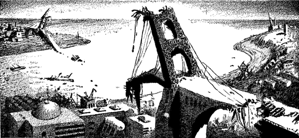 District Leader Howard Morely leaned back in his seat, to glance down at the bay. Idly, he allowed his gaze to wander over the expanse of water between the two blunt points of land, then he looked back at the skeletonlike spire which jutted upward from the green hills he had just passed over. He could remember when that ruin had been a support for one of the world's great bridges.