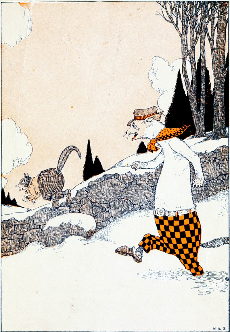 It happened, on a bleak winter's day, that Grumpy Weasel was strolling along the bank of Broad Brook when all at once he heard a squall. Instantly he whirled around. There was something about the cry that sounded familiar. And while he searched the stream up and down with his sharp eyes he grew angrier every moment.