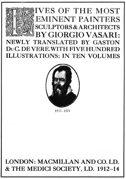Vasari's Introduction on Technique has not been included, because it has no immediate connection with the Lives. In any case, there already exists an adequate translation by Miss Maclehose. All Vasari's other prefaces and introductions are given in the order in which they are found in the edition of 1568.