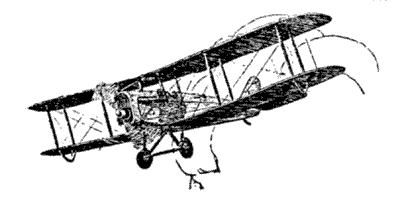 We then turned to gliding—coasting downhill on the air—as the only method of getting the desired practice in balancing a machine. After a few minutes’ practice we were able to make glides of over 300 feet, and in a few days were safely operating in 27-mile winds. In these experiments we met with several unexpected phenomena. We found that, contrary to the teachings of the books, the center of pressure on a curved surface traveled backward when the surface was inclined, at small angles, more and more edgewise to the wind. We also discovered that in free flight, when the wing on one side of the machine was presented to the wind at a greater angle than the one on the other side, the wing with the greater angle descended, and the machine turned in a direction just the reverse of[4] what we were led to expect when flying the machine as a kite. The larger angle gave more resistance to forward motion, and reduced the speed of the wing on that side. The decrease in speed more than counterbalanced the effect of the larger angle. The addition of a fixed vertical vane in the rear increased the trouble, and made the machine absolutely dangerous. It was some time before a remedy was discovered. This consisted of movable rudders working in conjunction with the twisting of the wings. The details of this arrangement are given in specifications published several years ago.