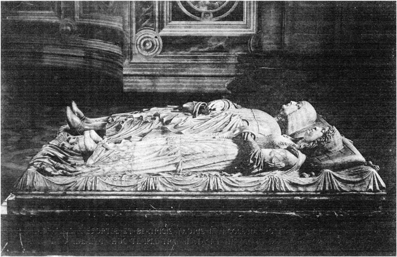Thirty years after the last Sforza duke had been laid in his grave, the noble monument which the Moro had raised to his wife's memory in S. Maria delle Grazie was broken up. The friars who had known Lodovico and revered his memory were dead and gone, and the Prior then in office, seized with iconoclastic zeal, ordered the monument to be removed from the choir, in accordance with a canon of the Council of Trent. The tomb was taken to pieces, and Cristoforo Solari's beautiful effigies of the duke and duchess were offered for sale. Fortunately, the news of this act of vandalism reached the ears of the Carthusians at Pavia, and remembering how much they owed to the Moro's generosity, they sent word to a Milanese citizen, Oldrado Lampugnano, to purchase the two marble statues for the Certosa. Oldrado, whose father had been exiled after the Moro's fall, and who was himself a loyal partisan of the house of Sforza, bought Solari's effigies for the small sum of thirty-eight ducats, and removed them to the Certosa, "that shrine which had been so often visited by the said duke and duchess in their lifetime, and for which they had ever shown the greatest love and honour."