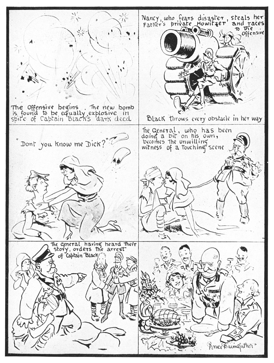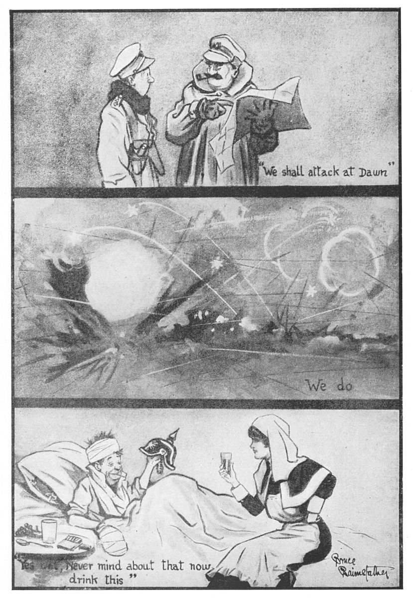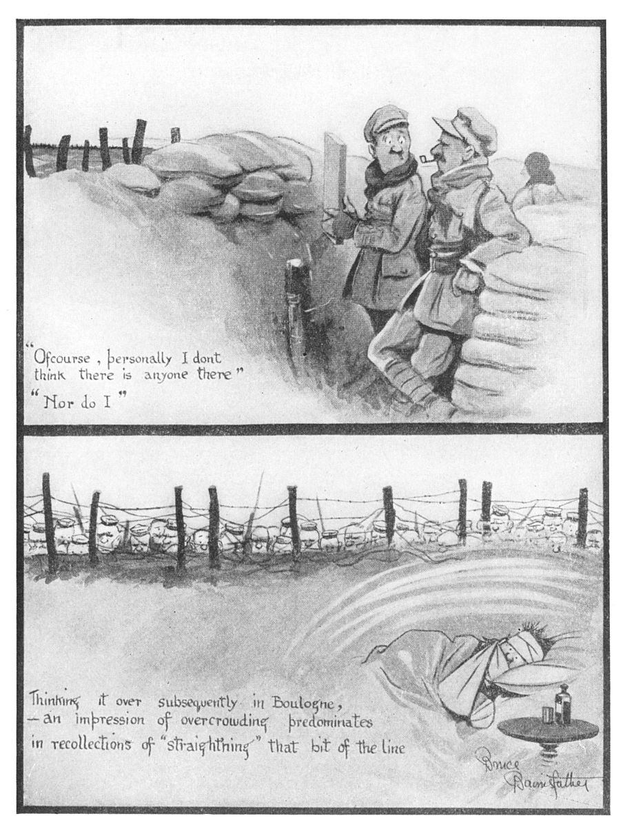 (In this cartoon Captain Bairnsfather refers to the report that the corpses of