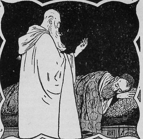 — Herra, sanoi hän ja kumarsi kunnioittavasti, minä näen, että olet väsynyt matkastasi. Jos tahtoisit tulla kotiini levähtämään, niin tekisit minulle suuren ilon. Se minun täytyy kuitenkin edeltäpäin sinulle ilmoittaa, etten voi pitää sinua luonani kauemmin kuin päivän, sillä olen pyhästi luvannut, etten samaa vierasta kutsu kuin kerran talooni.