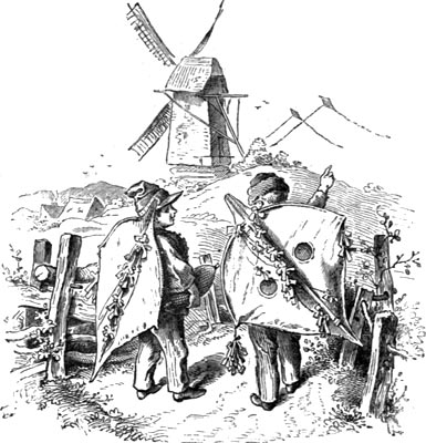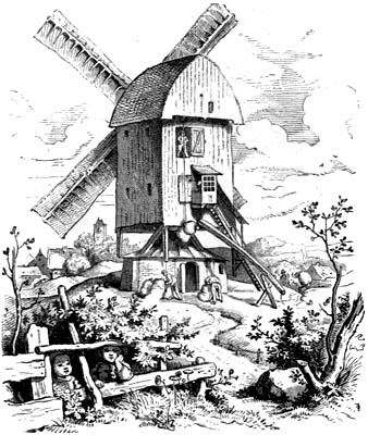 There is a nice breeze this afternoon, and this hill-side is just the place for flying a kite. Two kites are already flying merrily up in the sky, and our two young friends will fly theirs when they get a little higher up, near the windmill.