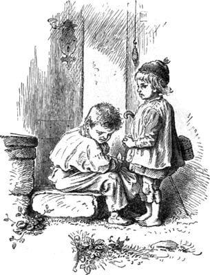 Poor little boys, they have no one to care for them, for their father and mother are drunken and idle, and send them about to beg. The children have been told that a kind Christian man lives at this house, and they are going to pull the bell and ask him to help them.