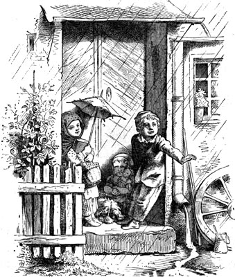 The children were just starting for school, when the rain suddenly came on, and prevented them. But it will be over presently.
