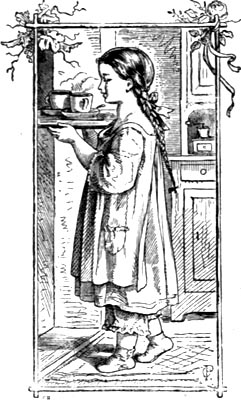 Mama is not well this morning, for she took cold yesterday going over the wet fields to visit the poor man who is dying. So she is not up so early as usual, and Harriet is taking her a cup of hot coffee. Harriet will not let the servant wait on her mama when she is ill, because she can herself pay her more attention. She is walking on tip-toe to avoid making a noise, as sick persons like to be quiet.