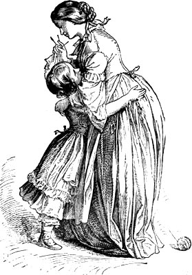 Ethel is a loving little girl, and is always clinging about her mama. Mama wishes to do some knitting just now, but Ethel is clinging to her, and is saying, “Mama, I do love you so.” I am afraid mama will not be able to do much knitting while Ethel interrupts her in this manner.