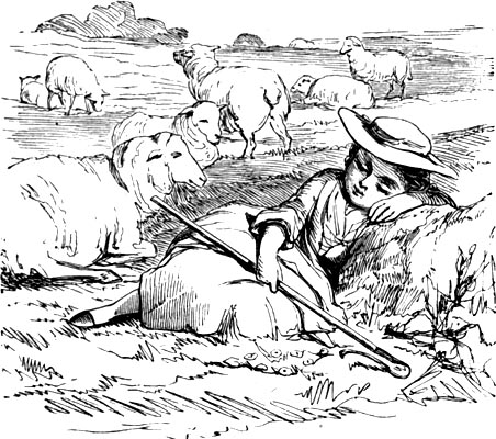 Ellen is very fond of animals, and likes to read about them. Papa has just bought her a pretty book, in which she has been reading a good deal about sheep and shepherds. I suppose it is owing to this that she dreamed last night she was a shepherdess, with a crook in her hand, and her sheep lying in the fields around her, just as our artist has drawn in the picture.