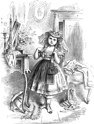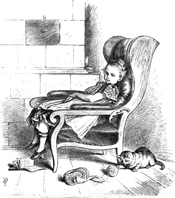 Lucy has just been asleep in the great arm-chair. She little thinks what pussy is about.