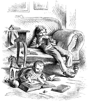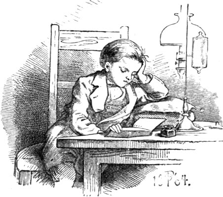 Arthur Jones has been writing some exercises in grammar this morning. He has not done much, but he is quite tired of it already. He wishes the clock would strike twelve, that he might leave off, and spin the top at his side. Shame on you, lazy Arthur!