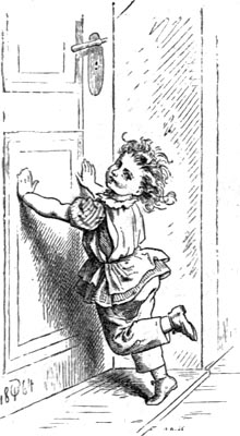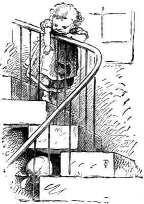 Maria is waiting for her little cousin to come and play with her in papa’s bed-room. She is standing on the top of the stairs listening, and is wondering why she does not come. She will come up presently, I suppose, and then they will have a nice game all to themselves, without disturbing any one in the house.