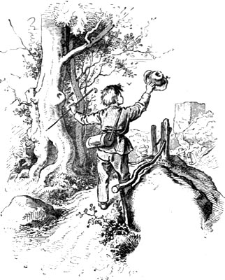 Edwin has had a long walk in the country, but in returning home has wandered out of the way, and lost himself. He is just now standing on an eminence in the road, and, seeing some travellers, is shouting to them, and asking them to direct him.