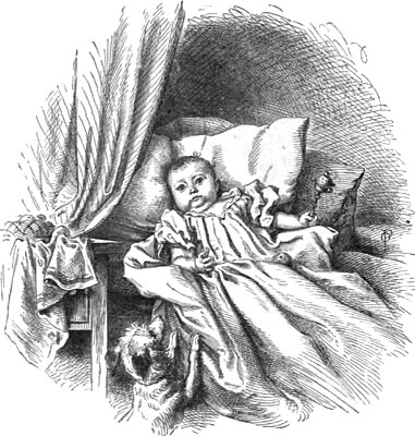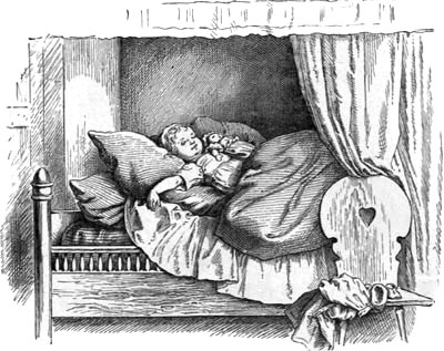 The sun has been up long ago, but baby is still asleep, with dolly by his side. We will not wake him, for he went to bed last night very tired. He had been out all day playing in the garden, and seemed quite glad when it was time for him to go to bed, so we will let him sleep a little longer. This will do him more good just now than being out in the hot sun.