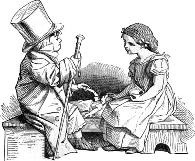 Harriet has just brought her doll’s cradle to the carpenter, to get it mended. He is telling her to leave it, and he will soon repair it.