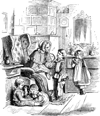 The children are come to-day on a visit to grandmama. She is telling them they have grown very much lately. But Miss Pry ought not to open grandmama’s drawers.