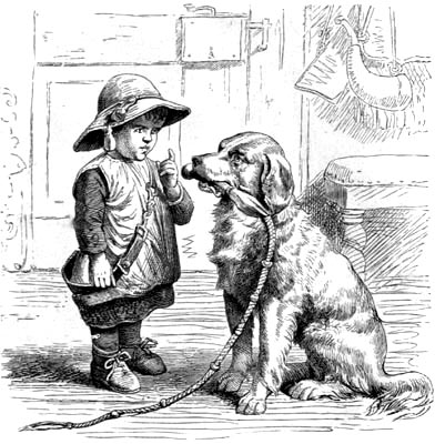 This is Alfred, the hunter’s little son, who has dressed himself up in his father’s belt and hat. Prince seems to know what Alfred says to him.