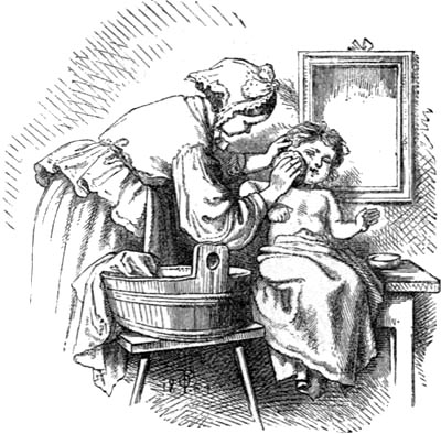 Baby brother is being washed this morning. He does not sit so quiet as he ought to do, and so his sister has, quite by accident, put the sponge in his eye. No wonder he should be making a wry face over it, and crying. If he had been still this would probably not have happened, as his sister is very careful not to hurt him. I hope the next time he is washed he will try to keep himself quiet.
