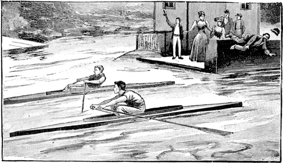 Encouraged by the shouts of their friends, both boys increase their speed. But the increase on both sides was equal, and still the boats kept bow and bow as they neared the boathouse.