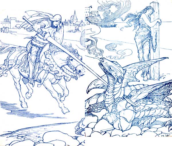 'Oh sir, I have followed that beast from far,' replied he, 'and have ridden my horse to death. If only I could find another I would still go after it.' As he spoke a squire came up leading a fresh horse for the King, and when the Knight saw it he prayed that it might be given to him, 'for,' said he, 'I have followed this quest this twelvemonth, and either I shall slay him or he will slay me.'