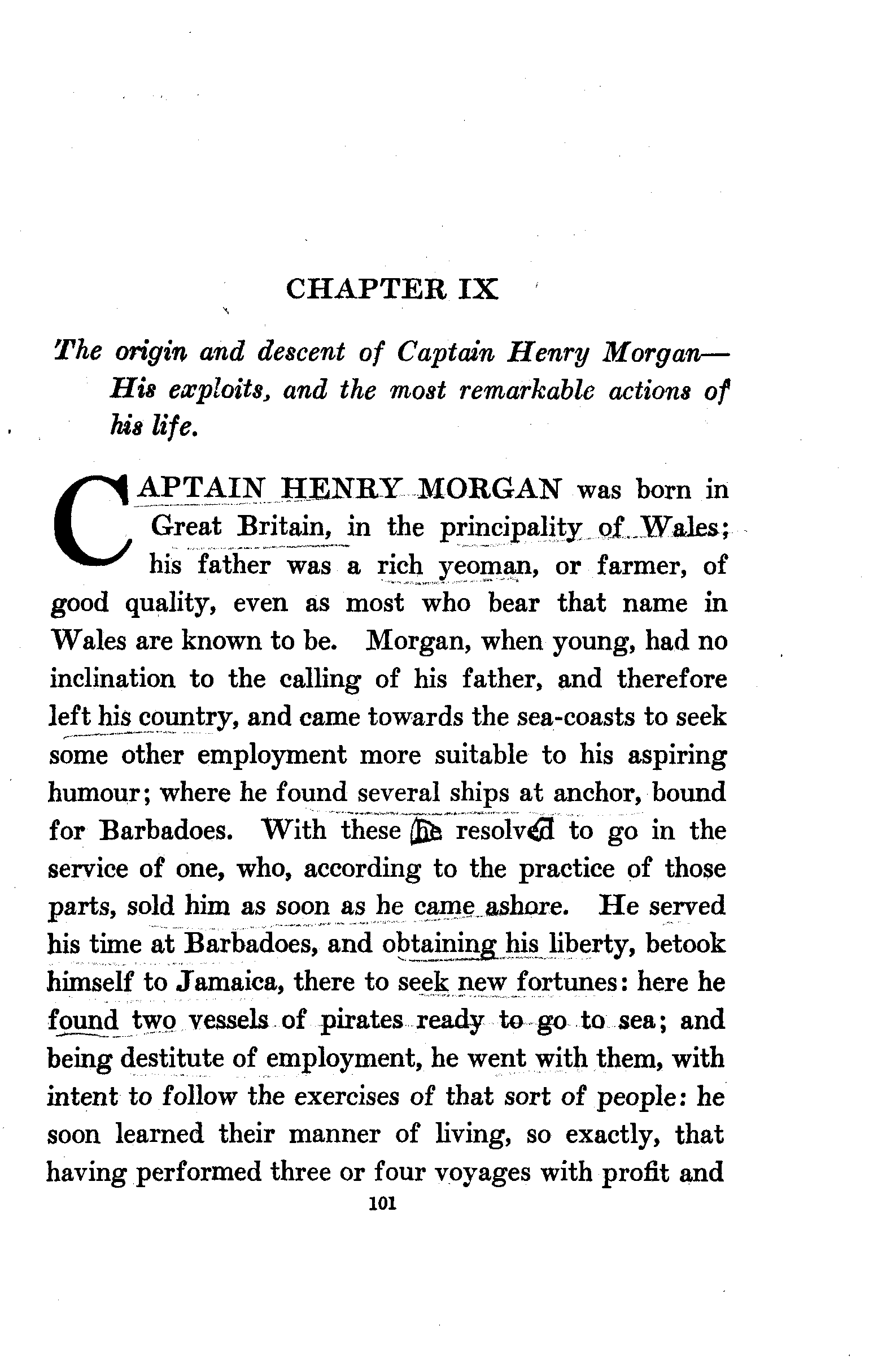 | The origin and descent of Captain Henry Morgan—His exploits, and the most remarkable actions of his life | 101 |