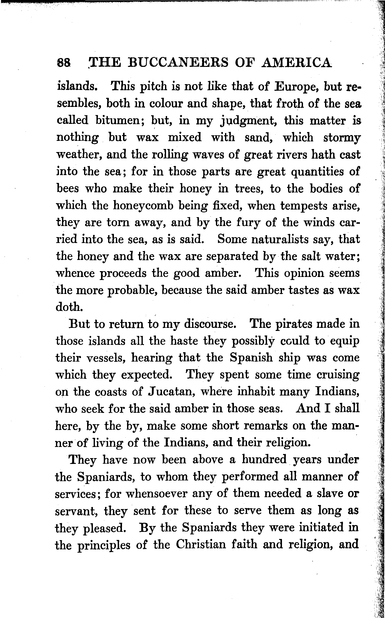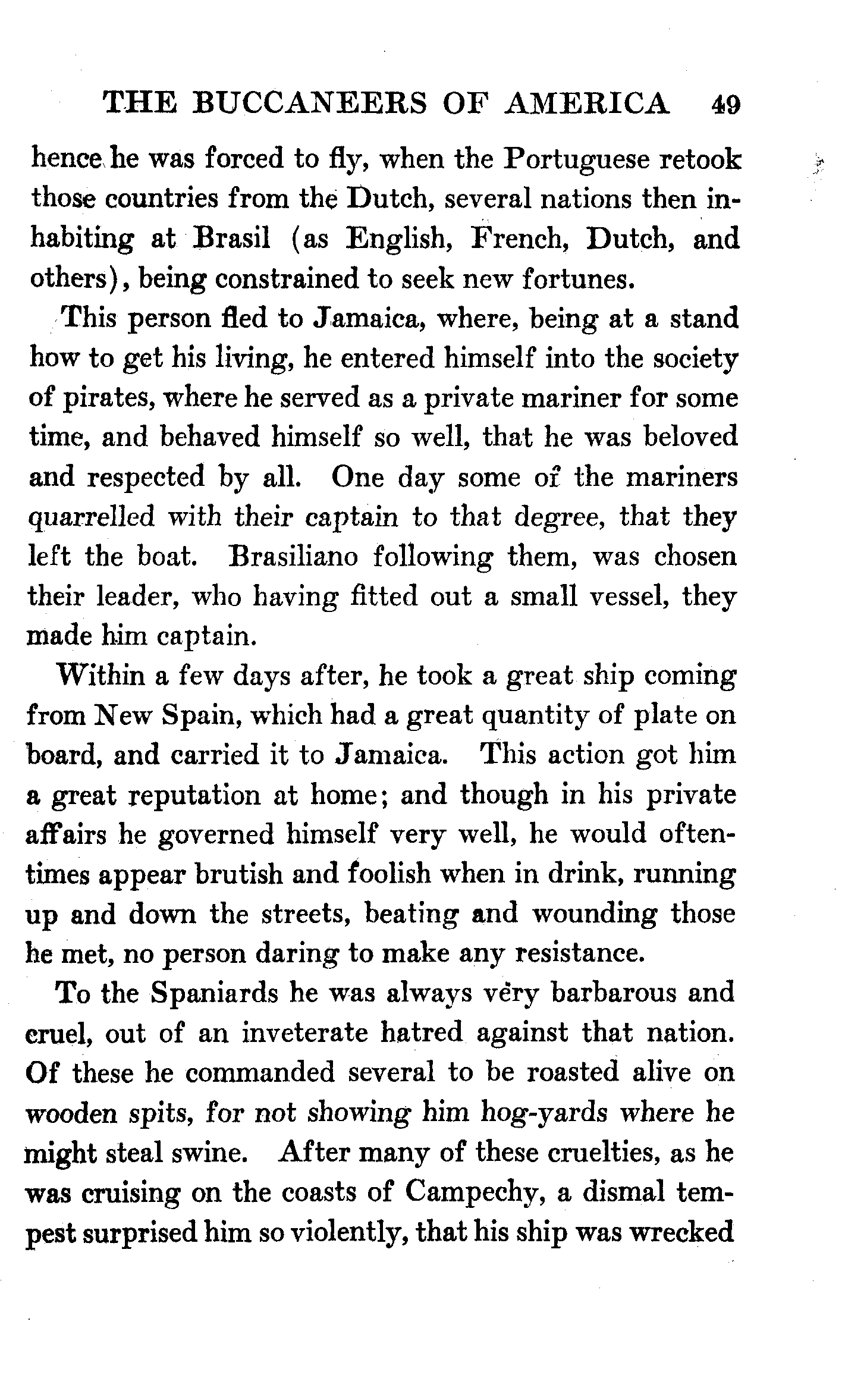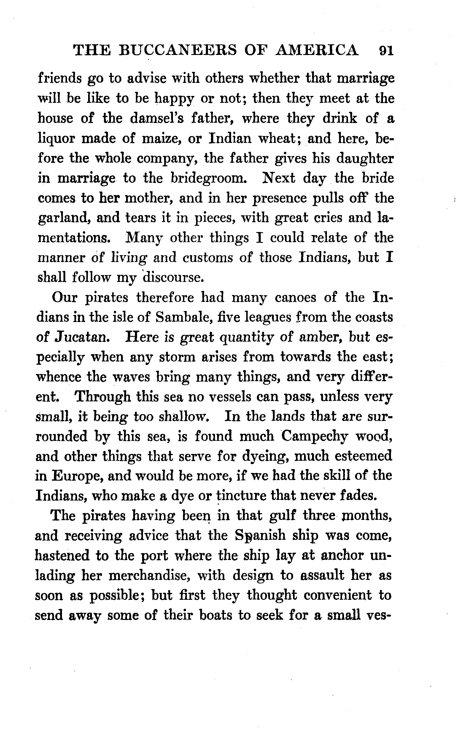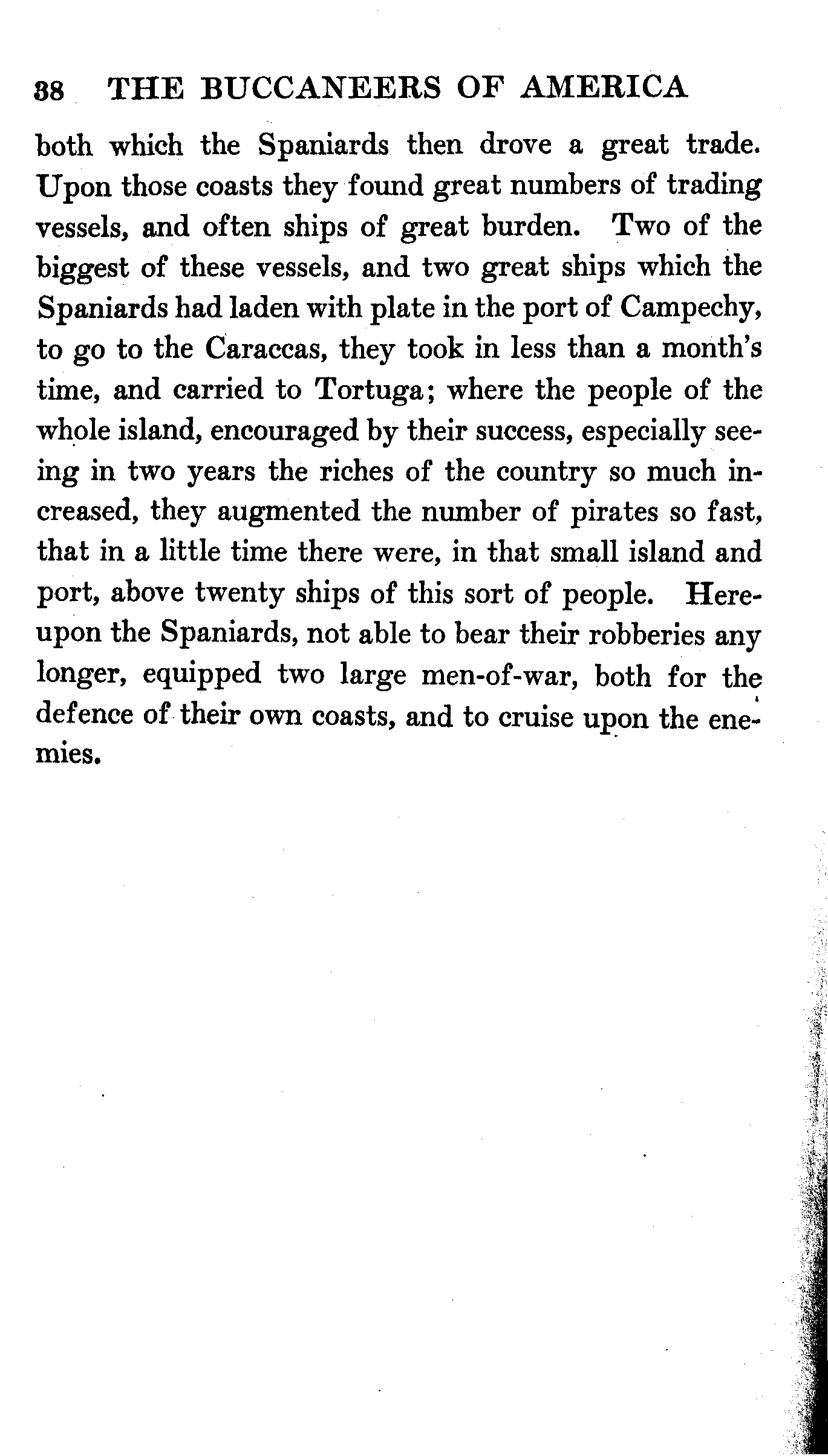 From time to time new editions of this work have been published, but in many cases much new material, not always authentic, has been added and the result has been to mar the original narrative as set forth by Esquemeling. In arranging this edition, the original English text only has been used, and but few changes made by cutting out the long and tedious description of plant and animal life of the West Indies of which Esquemeling had only a smattering of truth. But, the history of Captain Morgan and his fellow buccaneers is here printed almost identical with the original English translation, and we believe it is the first time this history has been published in a suitable form for the juvenile reader with no loss of interest to the adult.