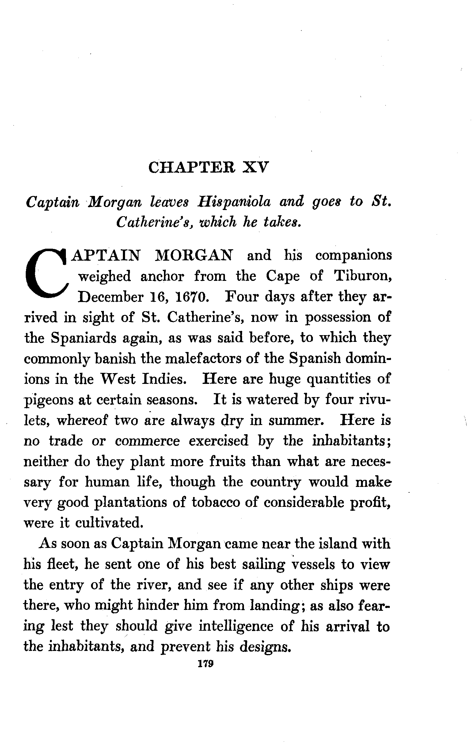| Captain Morgan leaves Hispaniola, and goes to St. Catherine's, which he takes | 179 |