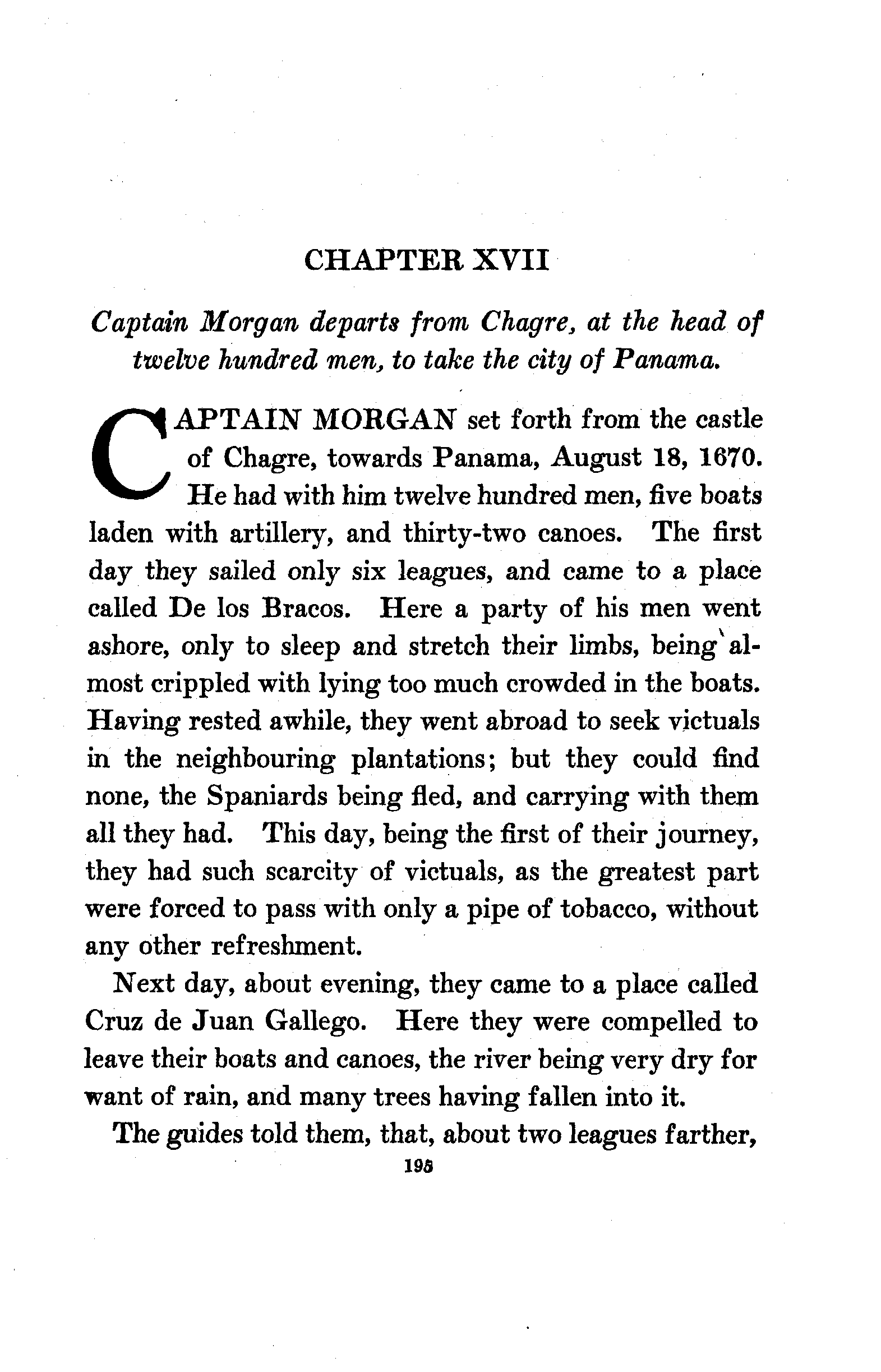 | Captain Morgan departs from Chagre, at the head of twelve hundred men, to take the city of Panama | 195 |