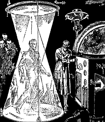 Hours had passed since the ninety-eight men—ninety-nine, counting Henry Woods—had stepped into the brittle column of light to be shunted back through unguessed time to a different plane of existence. The old scientist, during all those hours, had stood like a graven image before his machine, eyes staring fixedly at the globe.
