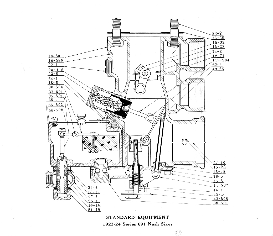 The Model "S" Marvel Carbureter is interchangeable with the Model "K" Marvel Carbureter, which was standard equipment on the 1922 and 1923 Nash Sixes of the early 691 series.