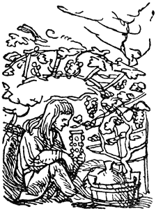 Te midden van al deze heerlijkheden geboren, [24]begon ik mijn leven geenszins met gekrijt, maar had ik voor mijn moeder dadelijk een lachje ten beste. Er bestaat ook voor mij volstrekt geen reden den hoogen zoon van Kronos5 zijn voedster, de geit, te benijden, omdat mij twee alleraardigste nymfen gezoogd hebben, Methe6, een dochter van Bacchus, en Apaedia7, een dochter van Pan8, die gij hier ook als gezellin in het gevolg mijner overige dienaressen ziet. Haar namen zult gij, als het uw verlangen is die te leeren kennen, van mij alleen in het Grieksch hooren.