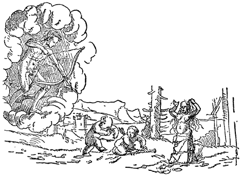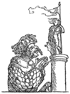 Een tweede zaak, die den lezer zal treffen en wellicht [7]ergeren, is het kleed, waarin Erasmus zijn satire heeft gestoken. Talloos zijn de aanhalingen uit de Oude Schrijvers, die, soms letterlijk, soms alleen wat gedachte betreft, in het betoog der Zotheid worden ingevlochten. Ook paradeeren Goden, helden en staatslieden uit de Antieke Mythologie en de Oude Geschiedenis voor onzen smaak veel te dikwijls op het tooneel. Erasmus is nu eenmaal door en door humanist, in de Oudheid voelt hij zich beter thuis dan in zijn eigen tijd en de geestverwanten, voor wie hij in de eerste plaats schrijft, eveneens. Hoe meer zijn publiek zich in die onvolprezen Oudheid kon verlustigen, des te dankbaarder was het hem. Daarbij komt nog, dat Erasmus kort te voren zijn “Adagia,” een verzameling van eenige duizenden Grieksche en Latijnsche spreekwoorden met toelichting, op nieuw had uitgegeven. Hij is er nog zoo vol van, dat hij bijv. in “de Lof der Zotheid” eenzelfde spreekwoord (“de ezel bij de lier”) tot viermaal toe herhaalt.