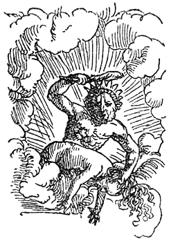 Gij kent dus mijn naam, gij—hoe zal ik U anders betitelen dan, gij groote zotten? De Godin Zotheid [22]kan haar ingewijden immers geen vereerender naam geven dan dezen? Maar omdat allen niet evenzeer met mijn afkomst bekend zijn, wil ik U al aanstonds met behulp der Muzen op de hoogte daarvan brengen. Mijn vader was evenmin Chaos als Orcus1 of Saturnus2 of Japetus3 of eenig ander van dat slag van versleten en versmeten Goden, maar Plutus4, hij alleen, de vader van menschen zoowel als van Goden5, ook al mogen Hesiodus6 en Homerus en zelfs Jupiter dit ontkennen. Door zijn wenk alleen wordt, evenals vroeger, zoo ook nu nog al het heilige en onheilige, hemel en aarde dooreengemengd. Zijn willekeur bestiert alles, oorlog en vrede, bevelhebberschappen en raadszittingen, rechtspraak en volksvergadering, huwelijken, verdragen, verbonden, wetten, kunsten en wetenschappen, ernst en scherts, kortom—de adem begeeft mij reeds—alle openbare en bijzondere zaken der menschen. Zonder zijn hulp zou die geheele bent van dichterlijke Godheden, of laat ik het stouter uitdrukken, zou ook die uitverkorenen kring van Goden òf in ’t geheel niet bestaan, òf in allen gevalle altijd thuis een eenvoudig maaltje hebben en zoo een hoogst armzalig leventje leiden.7 Al wie hem tegen zich heeft, zal bij Pallas zelfs geen voldoenden steun vinden, maar wien hij genadig is, die kan zelfs den hoogsten Jupiter met zijn bliksem naar den duivel wenschen. Op het bezit van zulk een vader beroem ik mij! En hij heeft mij niet uit zijn hersenpan doen voortkomen, zooals Jupiter die norsche en kribbebijtrige Pallas, maar hij verwekte mij bij een alleraardigste en allergeestigste Nymf, Jonkheid genaamd, en hij had zich aan haar niet verbonden door een vervelenden huwelijksband—ge weet, dat zoo die manke smid (Vulcanus) geboren werd—maar, wat wel zoo aangenaam is, hij was met haar in liefde vereenigd, zooals [23]onze Homerus zegt. Maar gij moet niet denken, dat ik het leven te danken heb aan dien afgeleefden en blinden Plutus van Aristophanes, neen, hij werd mijn vader, toen hij nog in de kracht van ’t leven was en gloeide niet alleen van het vuur der jeugd, maar nog veel meer van den nectar, dien hij op een godenmaal wat al te ruim en al te sterk gedronken had.