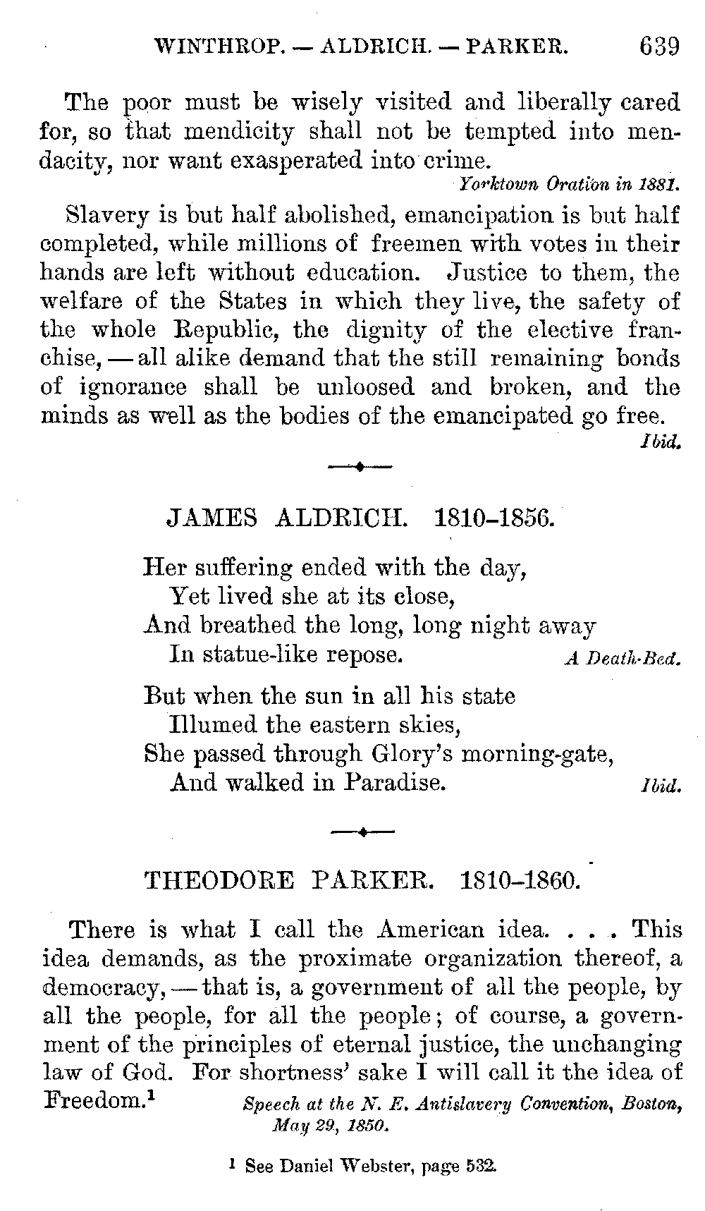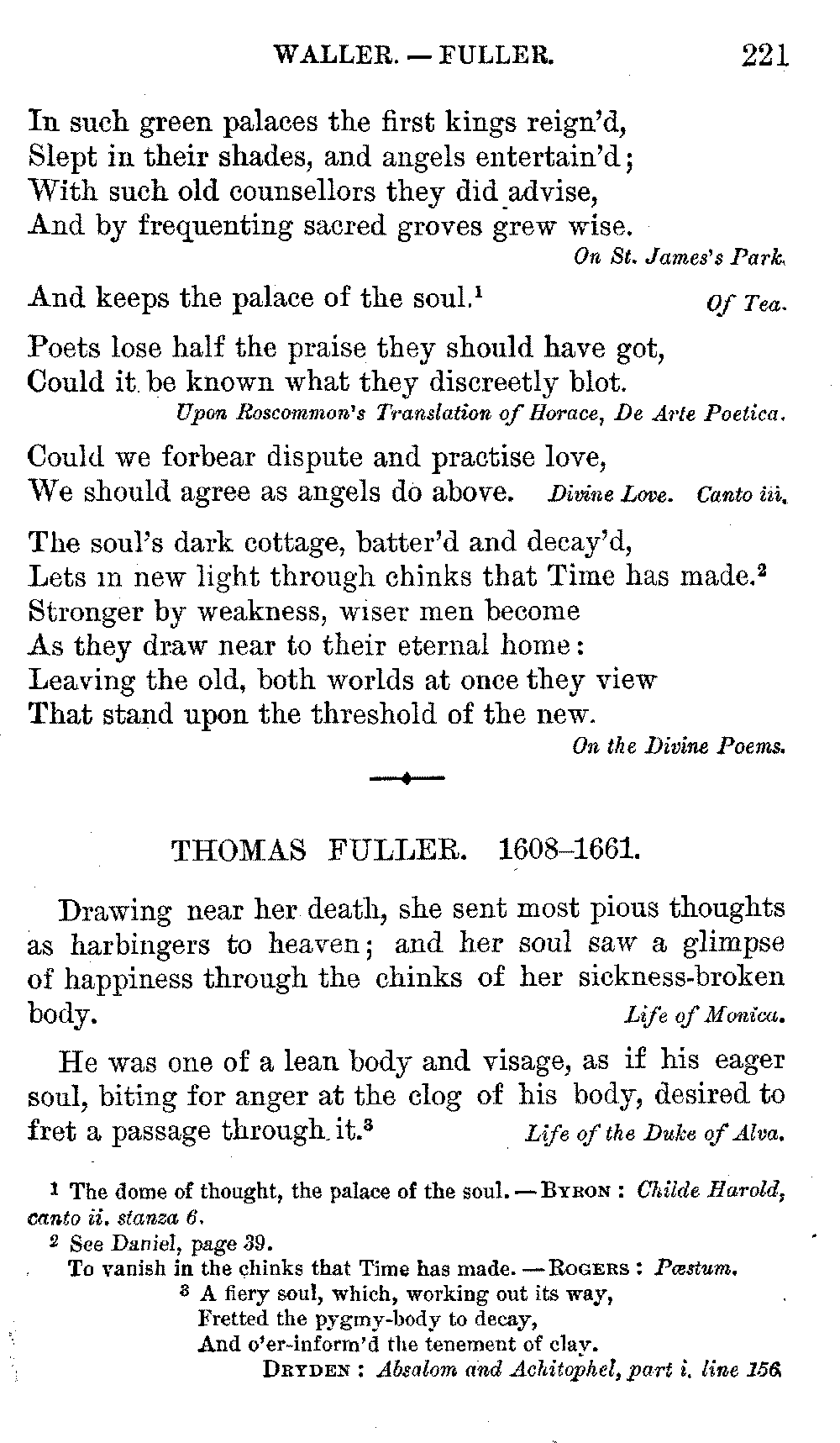 "It is not easy to determine in all cases the degree of familiarity that may belong to phrases and sentences which present themselves for admission; for what is familiar to one class of readers may be quite new to another. Many maxims of the most famous writers of our language, and numberless curious and happy turns from orators and poets, have knocked at the door, and it was hard to deny them. But to admit these simply on their own merits, without assurance that the general reader would readily recognize them as old friends, was aside from the purpose of this collection. Still, it has been thought better to incur the risk of erring on the side of fulness."