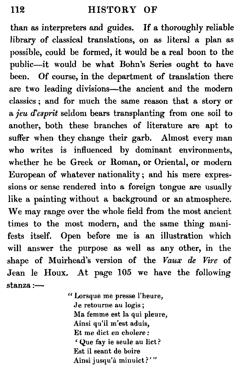 P. 109. Translations.—It is remarkable that Aulus Gellius makes the same complaint as is embodied in the text, about the lame versions of Latin writers from the Greek.