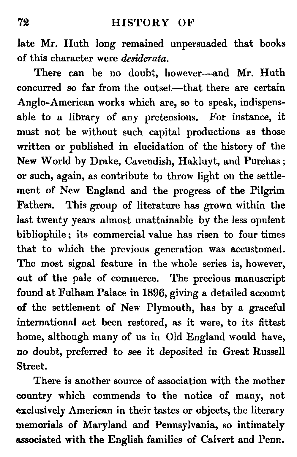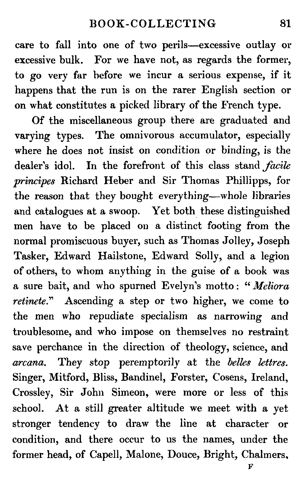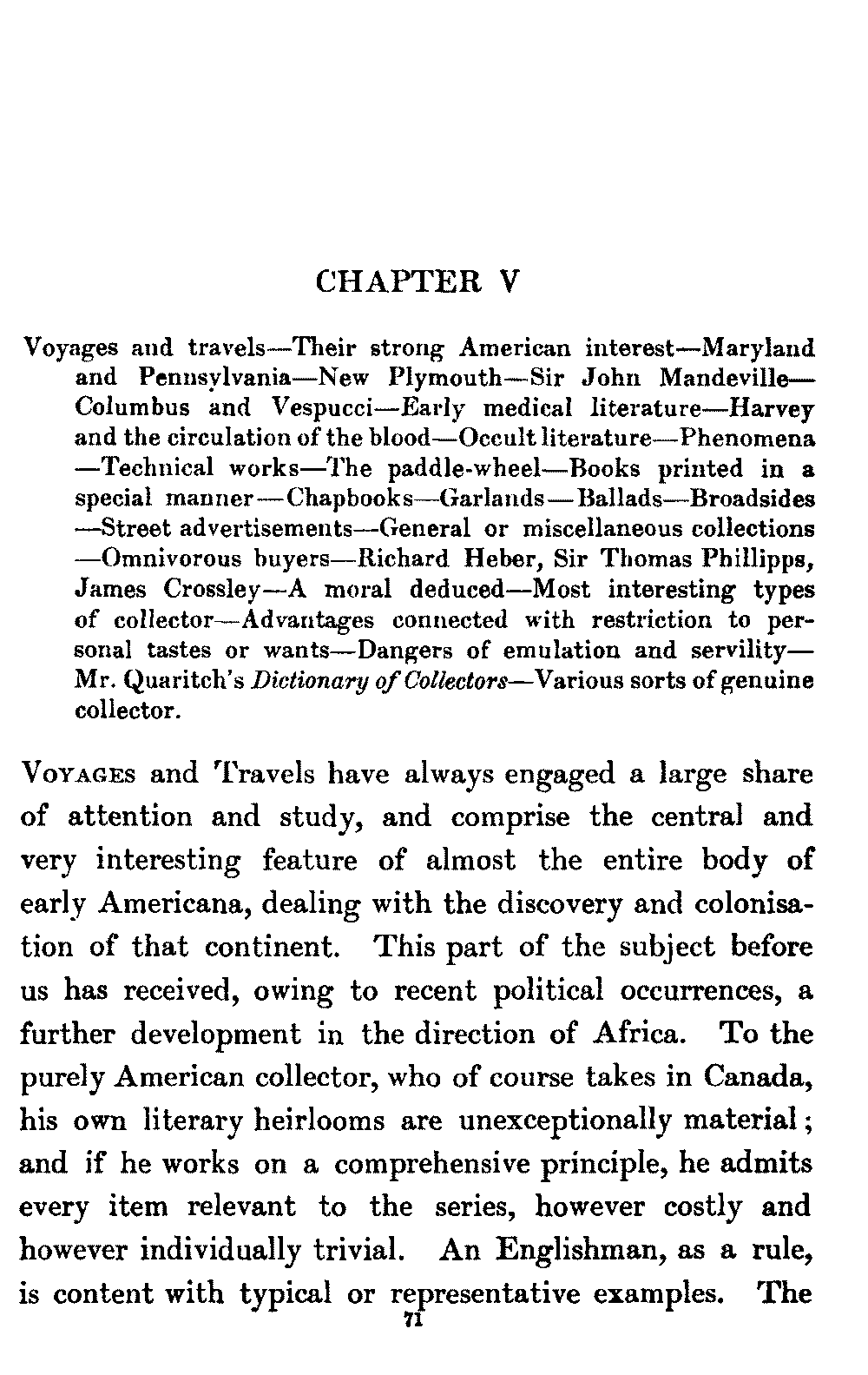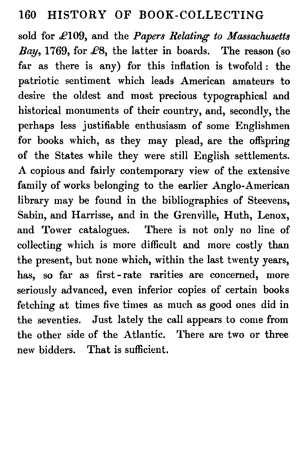 After all said, much as we at home here in Britain need to be better instructed in the art of Book-Collecting, our American cousins are still farther from having completed their education in this way—a few have not commenced it, I fancy. It is not generally realised in England that the American collector of loftier range is a type entirely distinct from the normal book-collector, whose limit is quickly reached. Those who buy books in the United States are by no means all Hoes and Morgans.