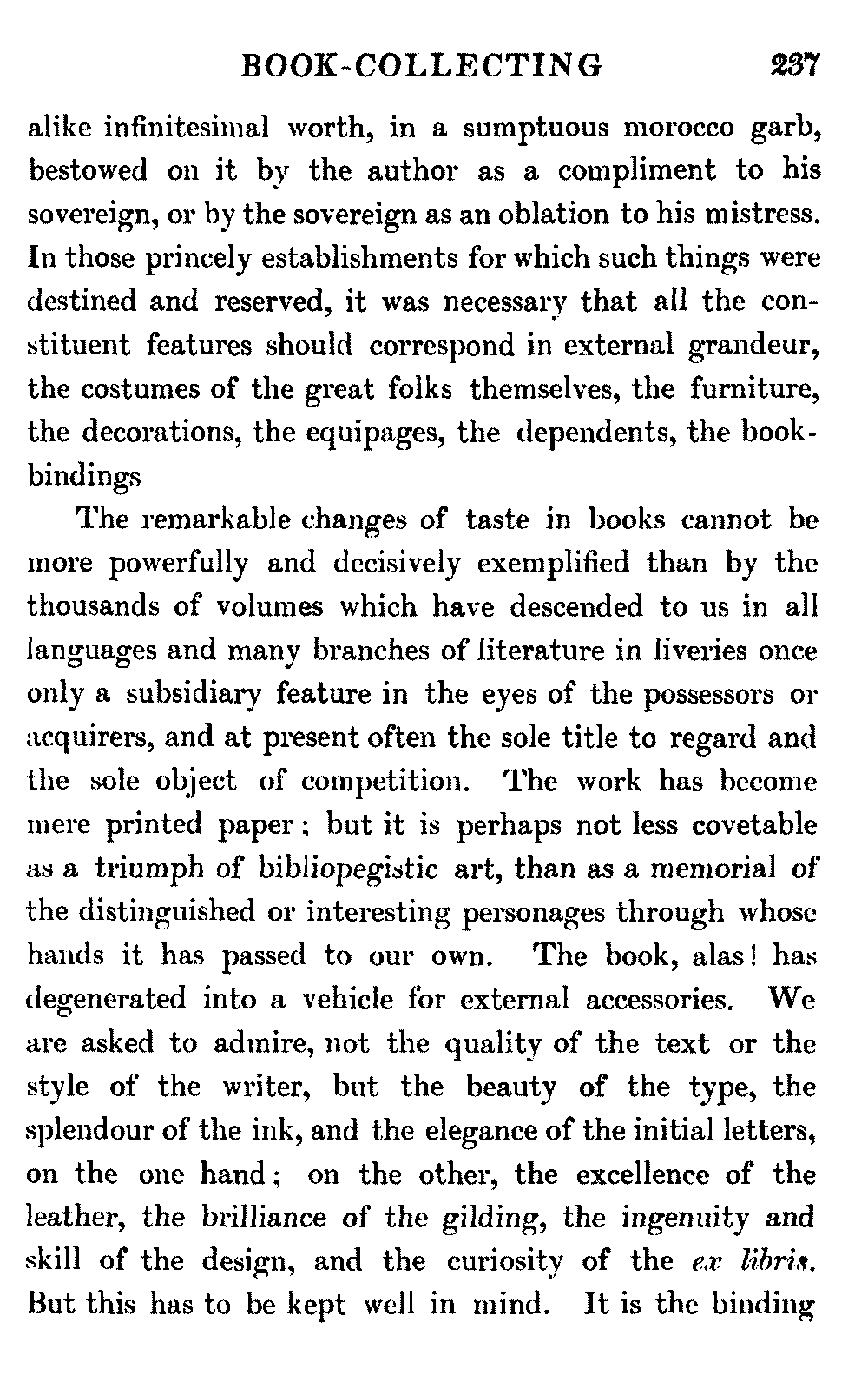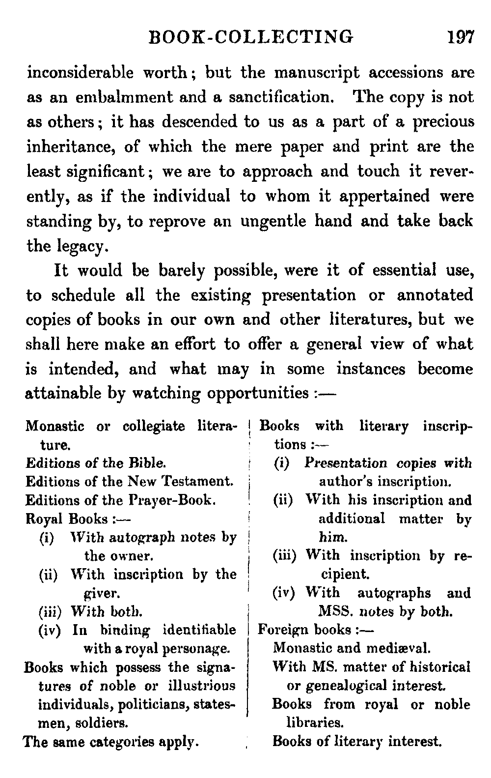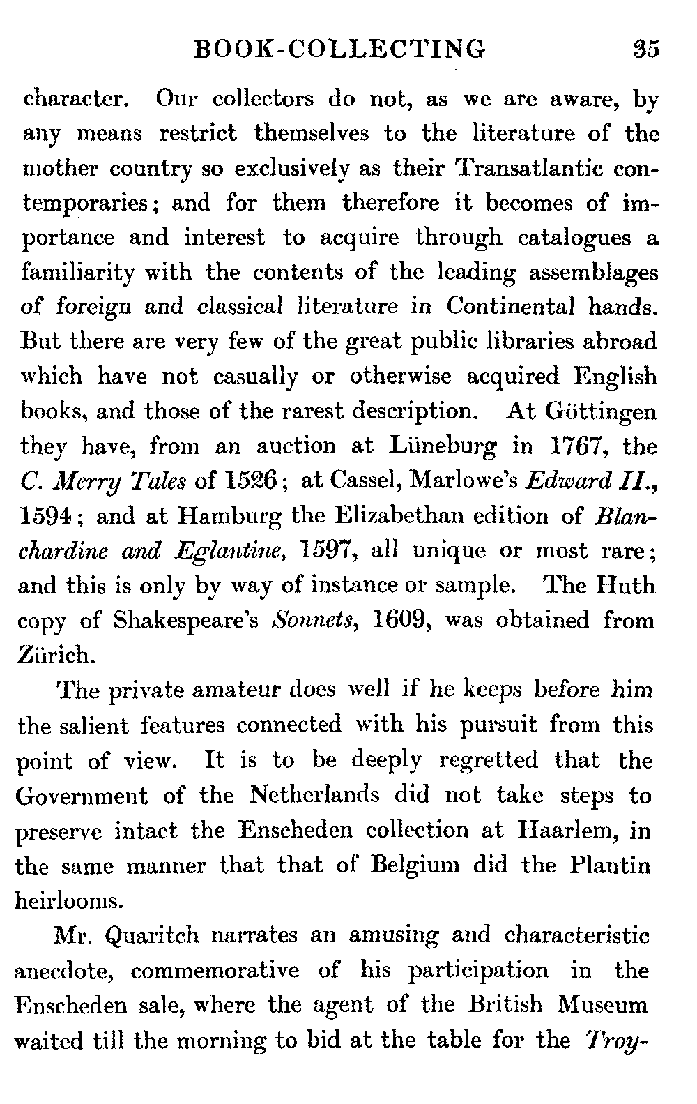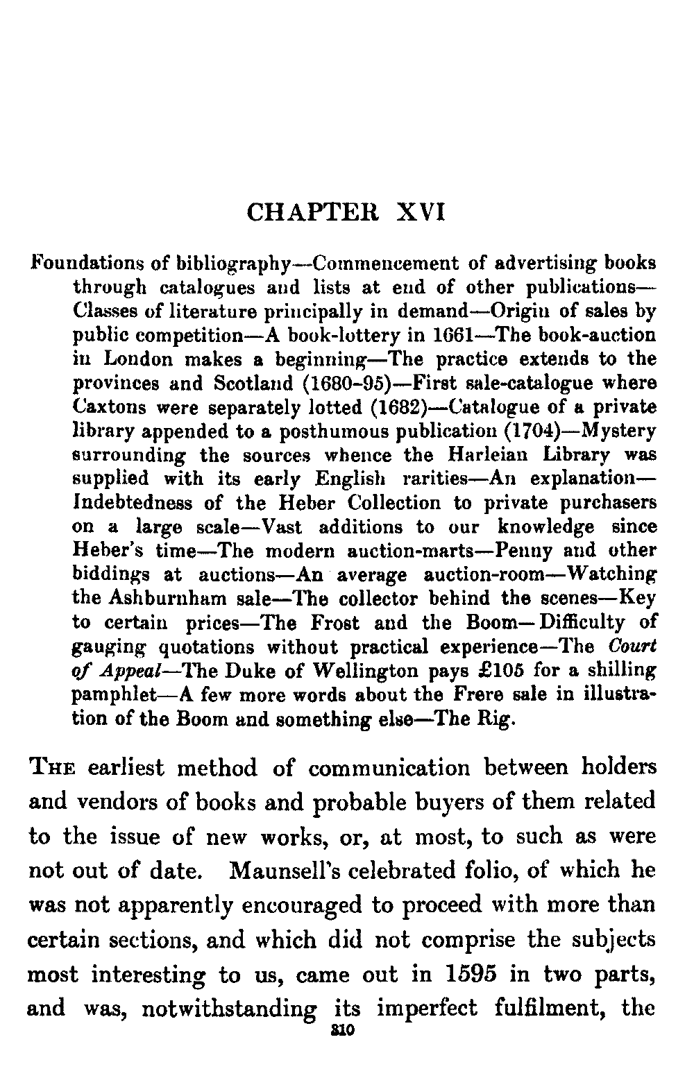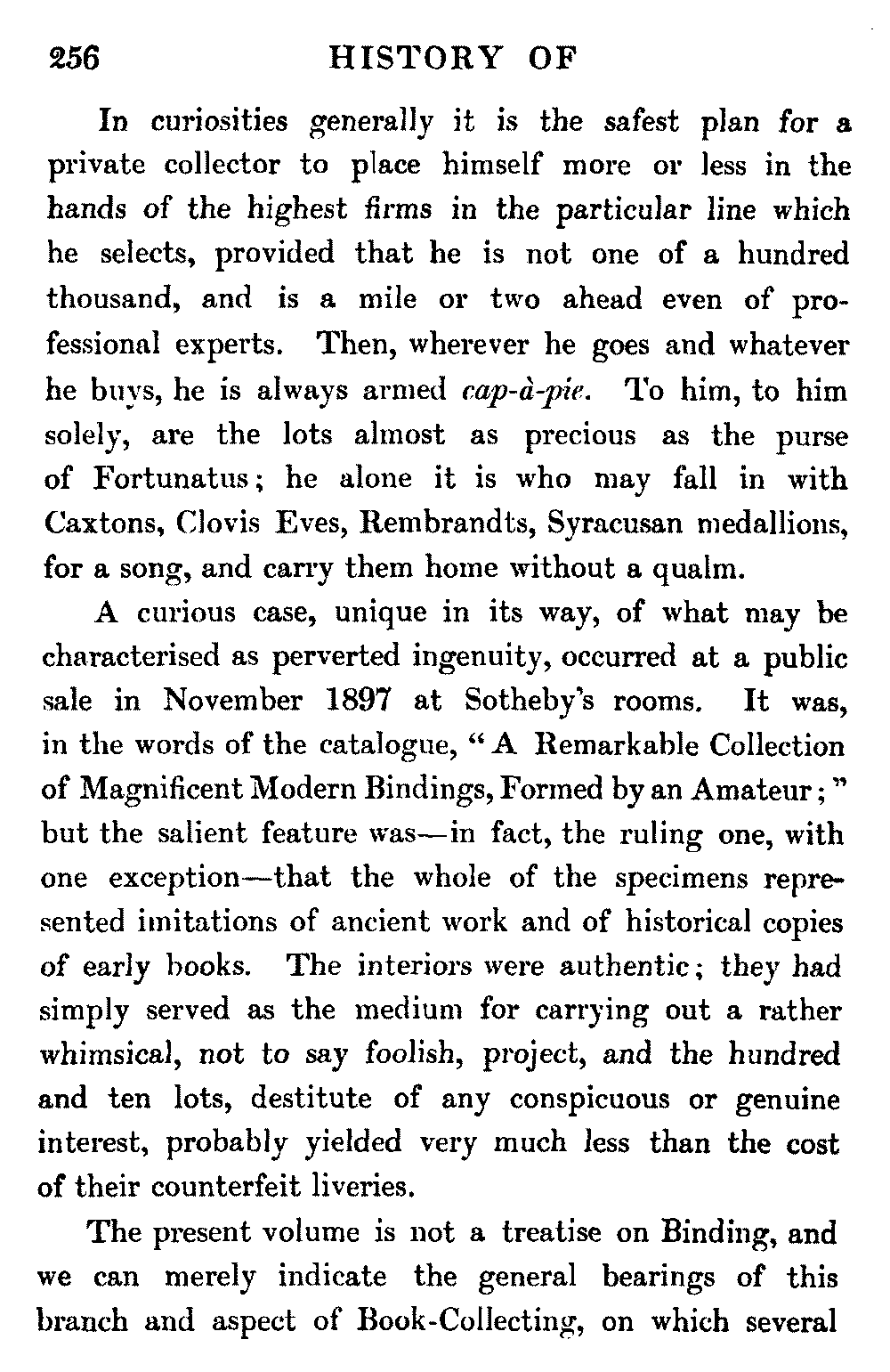 So it happened that I found myself the possessor of a considerable body of information, covering the entire field of Book-Collecting in Great Britain and Ireland and on the European continent, and incidentally illustrating such cognate features as Printing Materials, Binding, and Inscriptions or Autographs, some enhancing the interest of an already interesting item, others conferring on an otherwise valueless one a peculiar claim to notice.