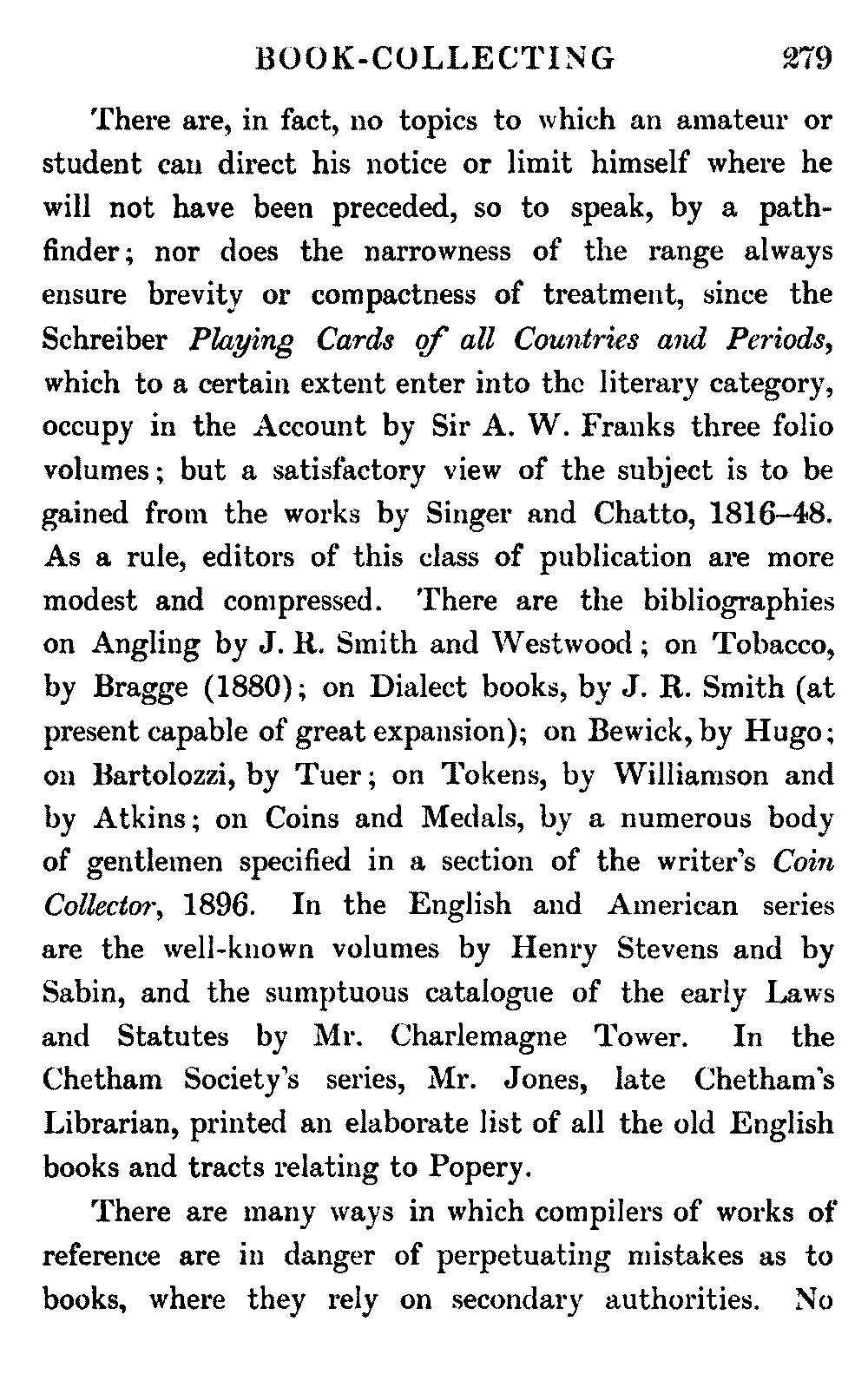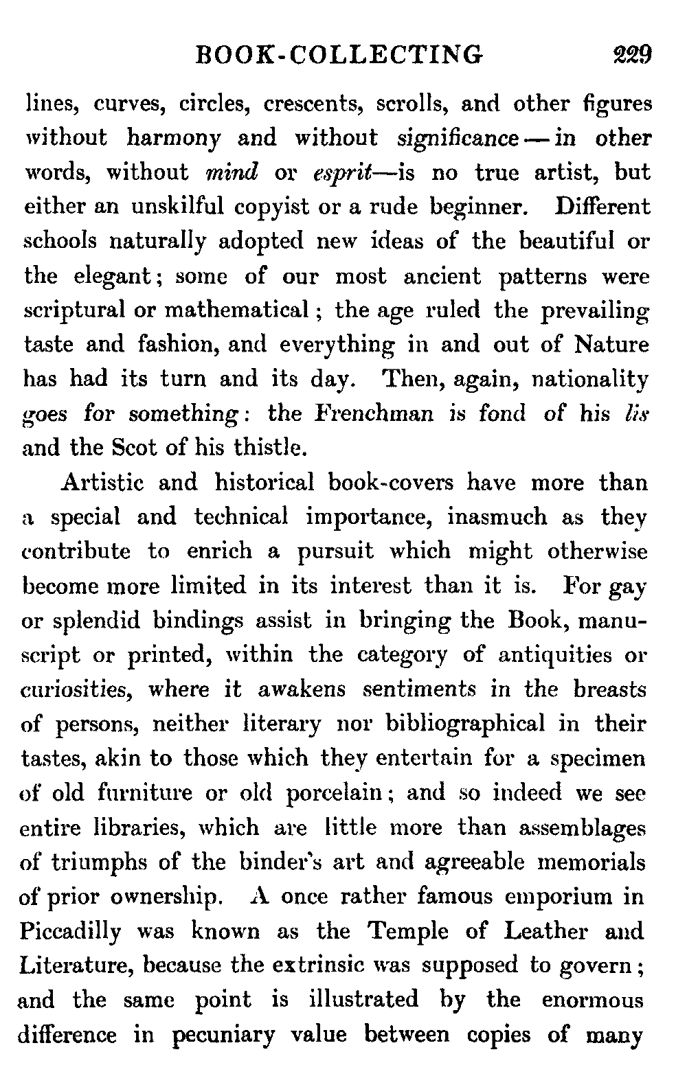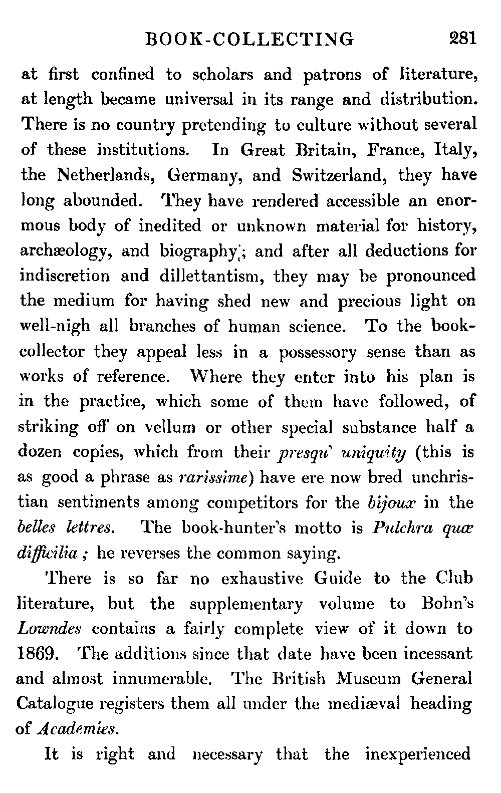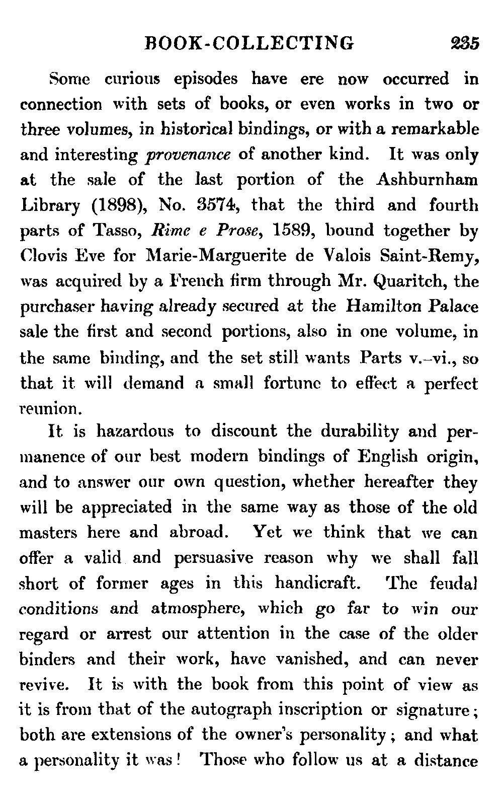 So it happened that I found myself the possessor of a considerable body of information, covering the entire field of Book-Collecting in Great Britain and Ireland and on the European continent, and incidentally illustrating such cognate features as Printing Materials, Binding, and Inscriptions or Autographs, some enhancing the interest of an already interesting item, others conferring on an otherwise valueless one a peculiar claim to notice.