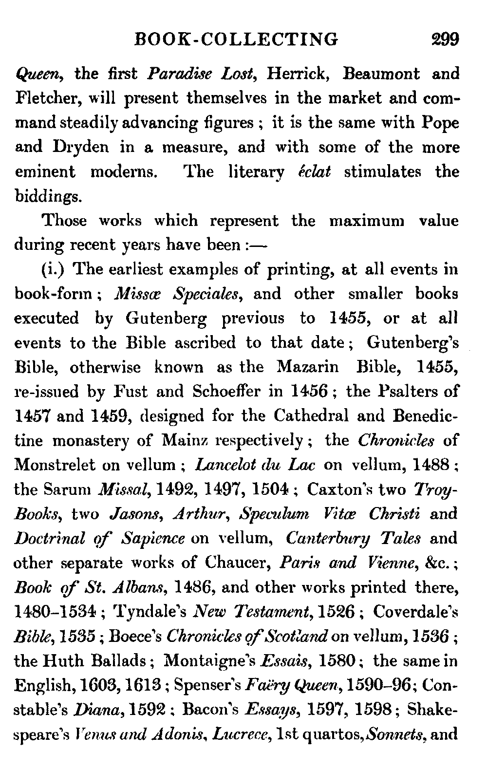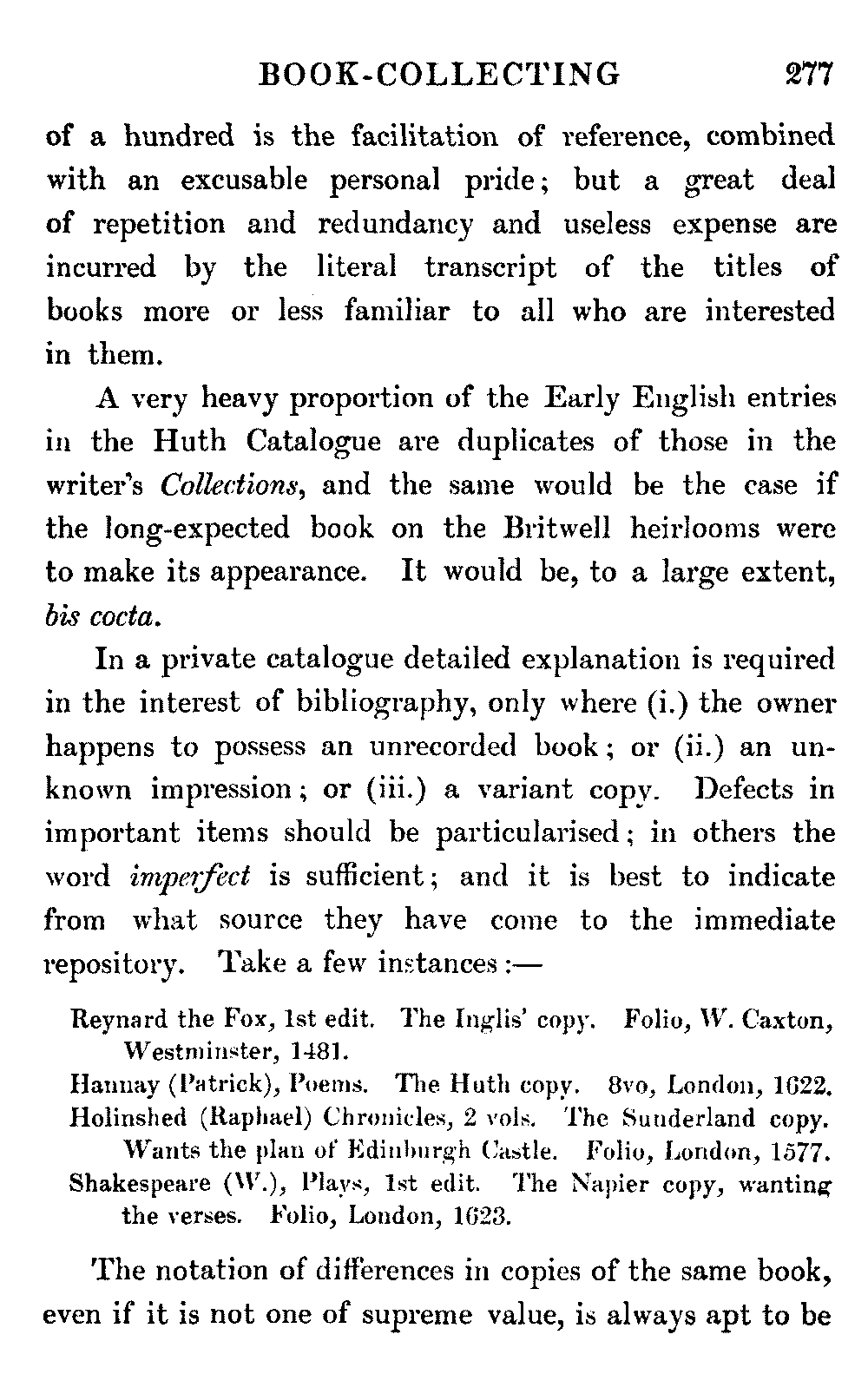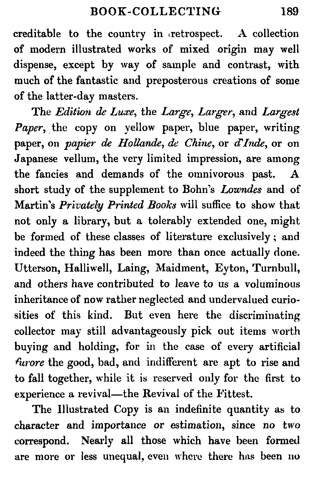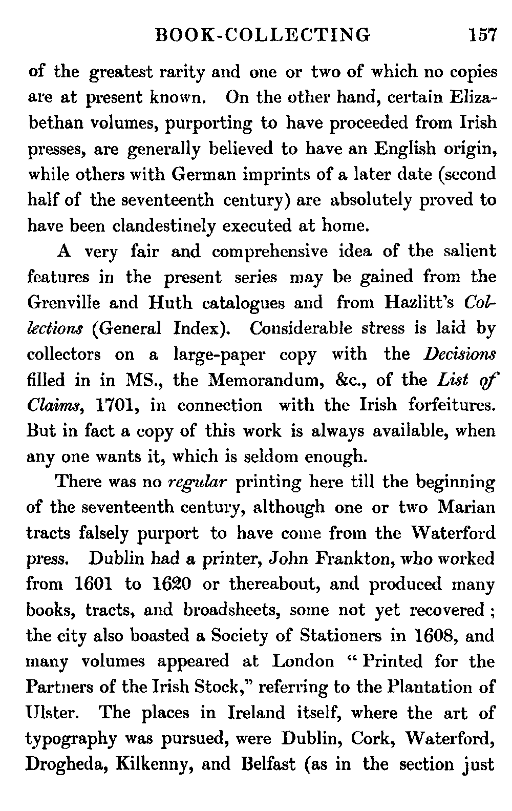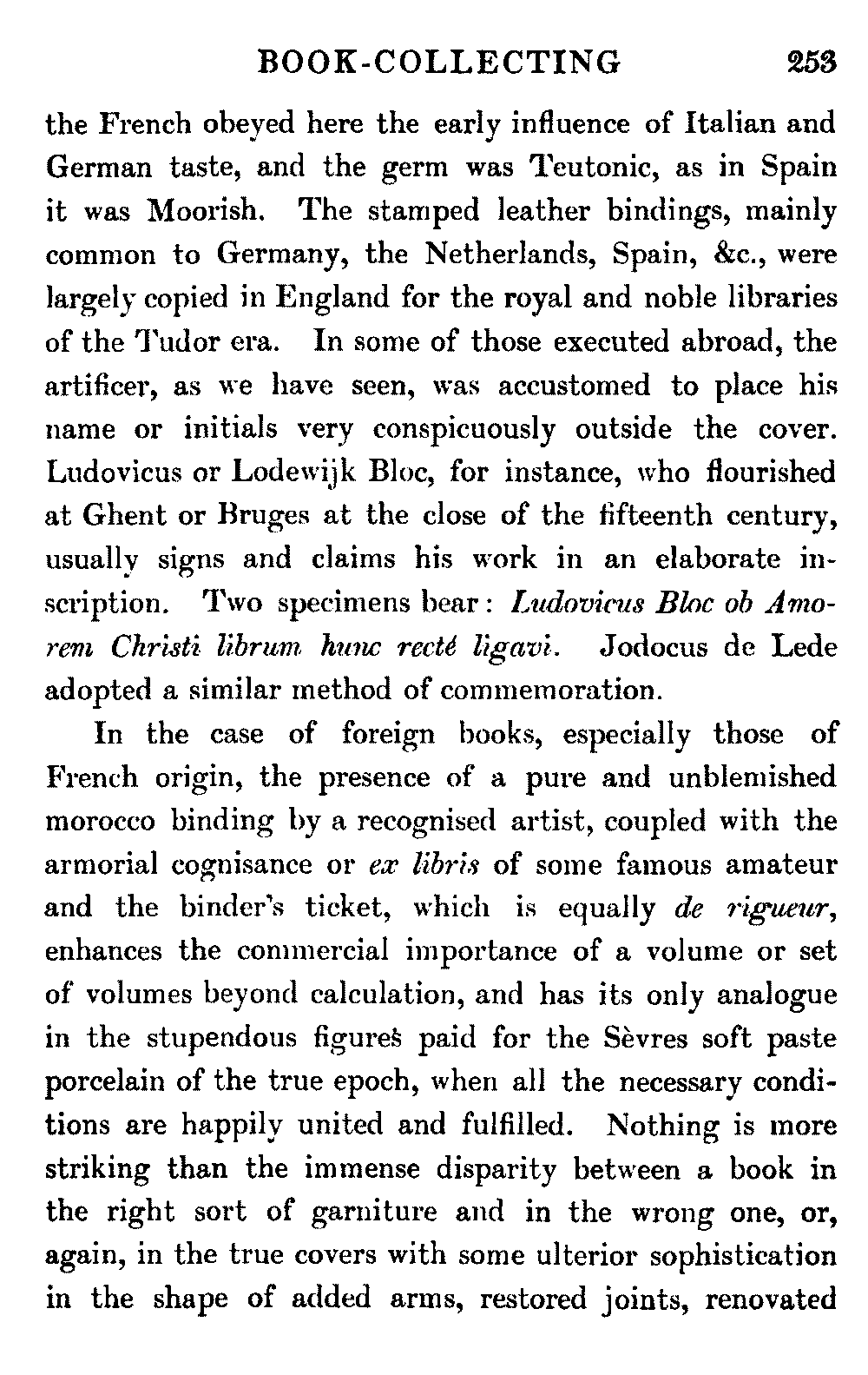So it happened that I found myself the possessor of a considerable body of information, covering the entire field of Book-Collecting in Great Britain and Ireland and on the European continent, and incidentally illustrating such cognate features as Printing Materials, Binding, and Inscriptions or Autographs, some enhancing the interest of an already interesting item, others conferring on an otherwise valueless one a peculiar claim to notice.