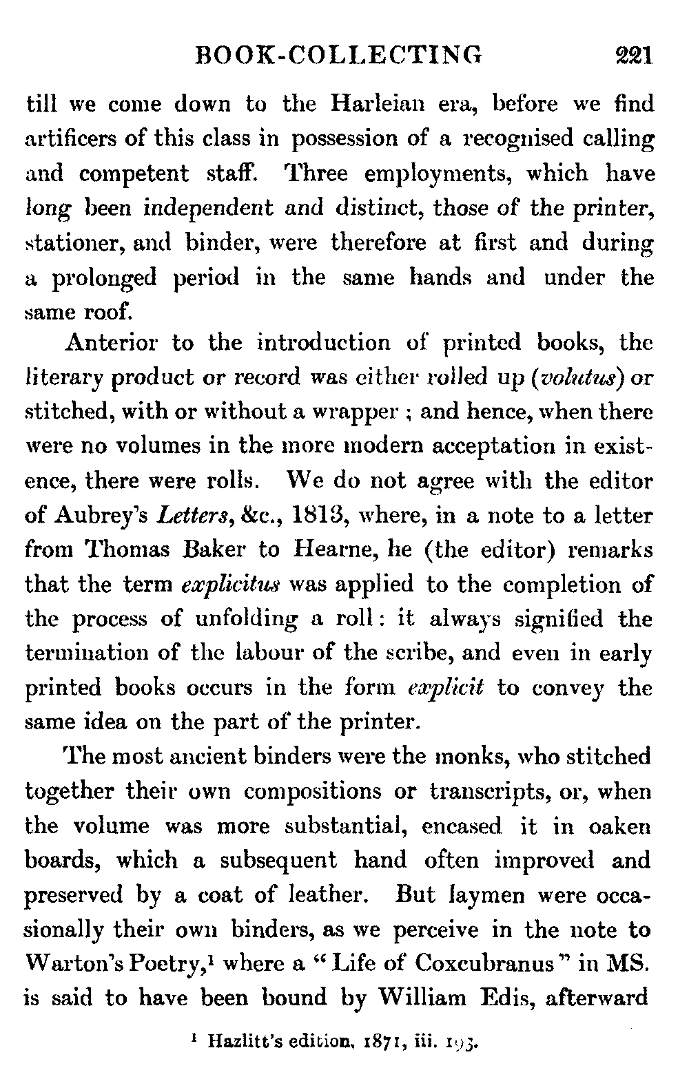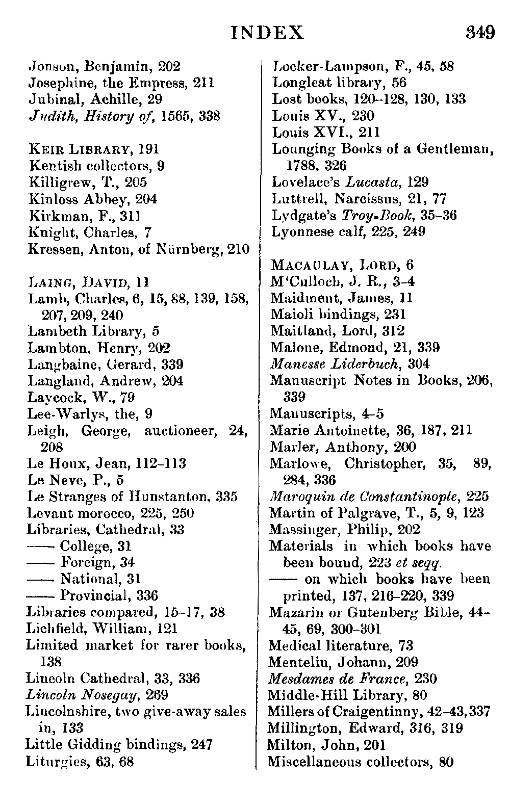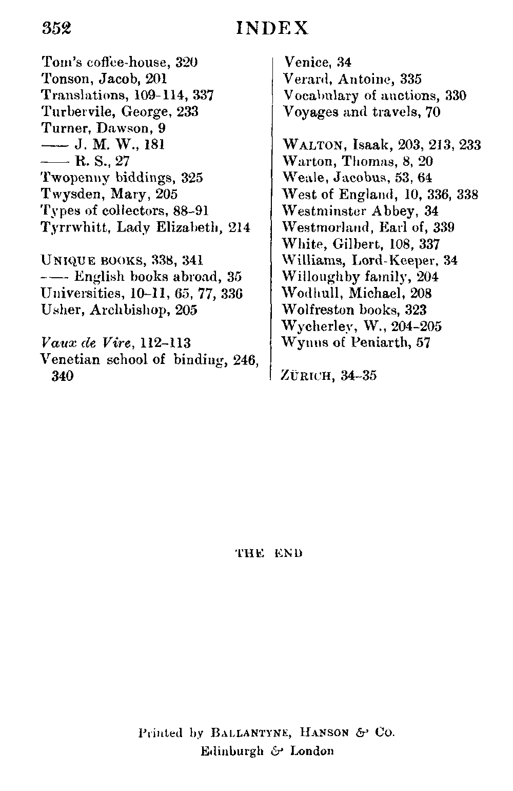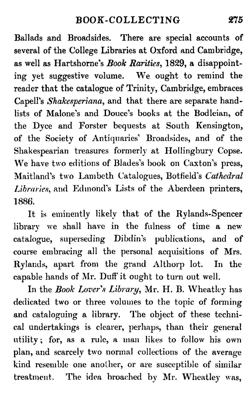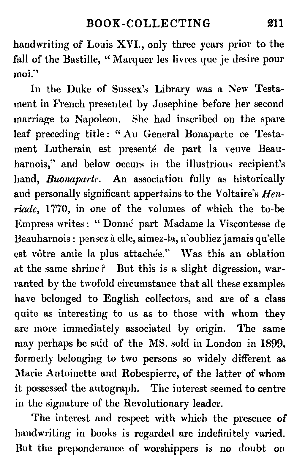 So it happened that I found myself the possessor of a considerable body of information, covering the entire field of Book-Collecting in Great Britain and Ireland and on the European continent, and incidentally illustrating such cognate features as Printing Materials, Binding, and Inscriptions or Autographs, some enhancing the interest of an already interesting item, others conferring on an otherwise valueless one a peculiar claim to notice.