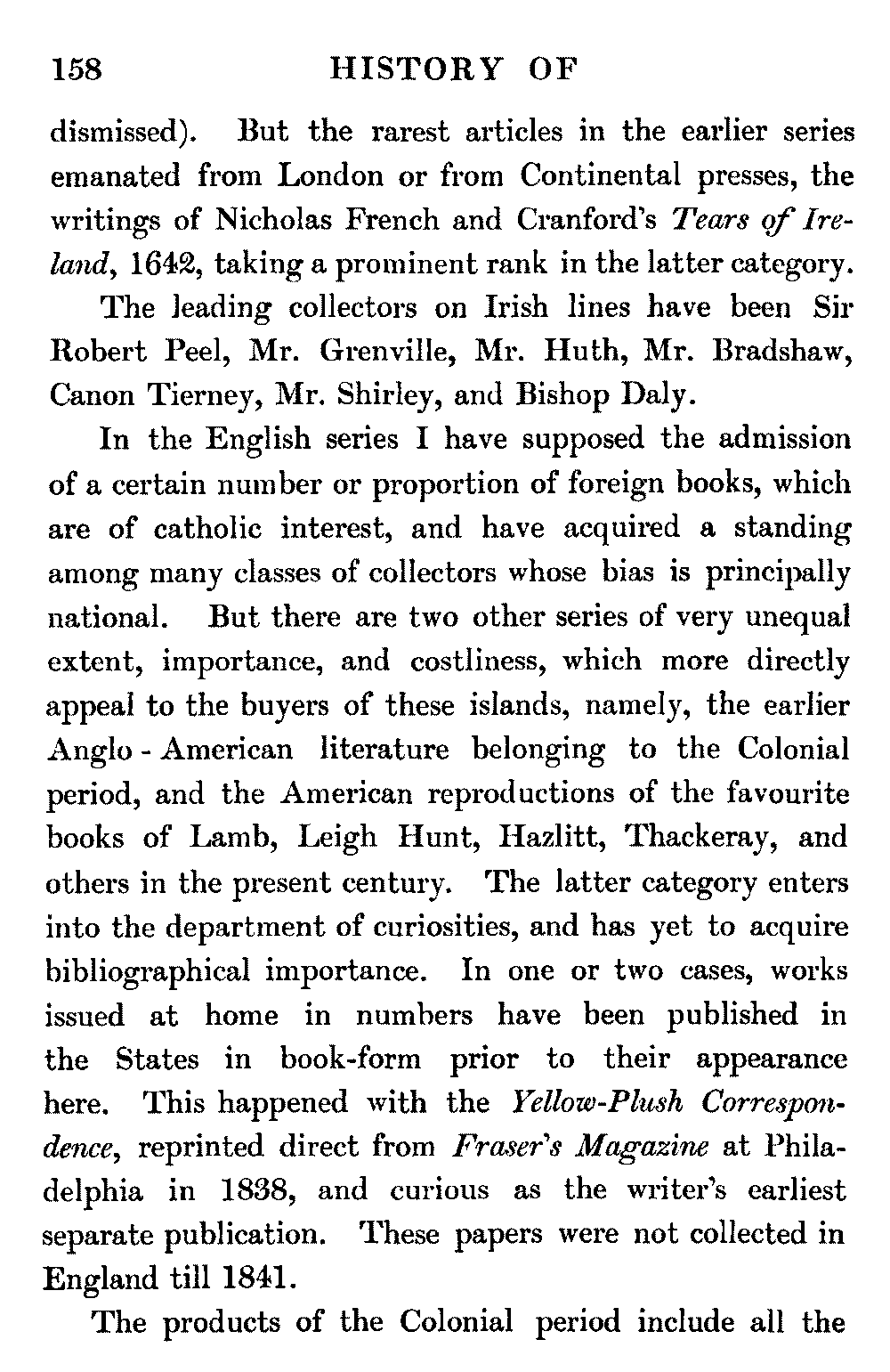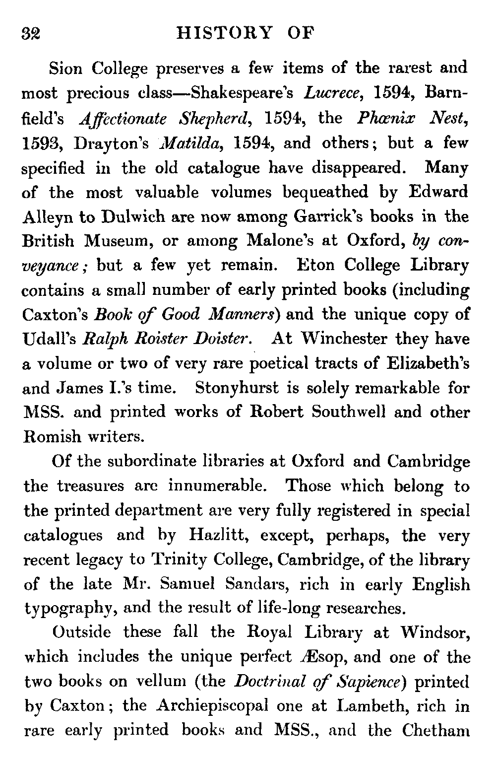 With respect to some of the college libraries at Oxford, Cambridge, and even Dublin, it is easier to arrive at the facts, so far as they go, or, in other words, many of the rare and important acquisitions of those institutions came to them at a period anterior to what may be termed the bibliographical era, and were often contemporary gifts from the authors of the volumes or from early owners of them.