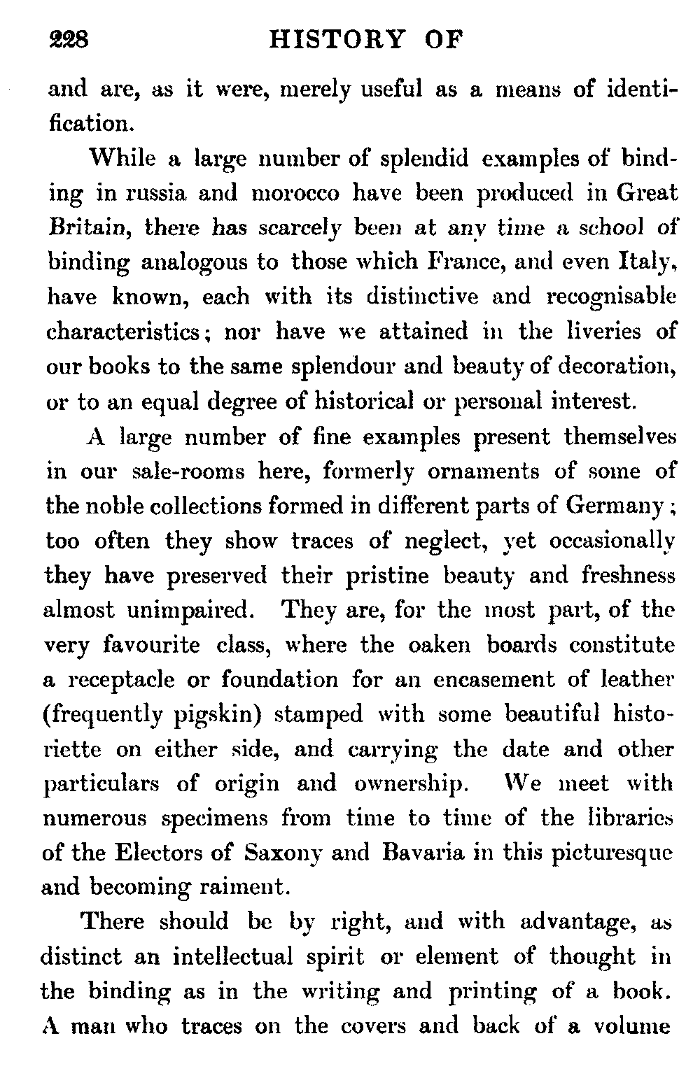 We must, however, in justice to this branch of the topic and to our readers, refrain from further pursuit of the discussion of it, as its adequate treatment would absorb a monograph to the full extent as ample as the present, and such a Manual is in point of fact a desideratum—one, too, which the improved state of bibliographical knowledge would assist in rendering much more satisfactory than was formerly possible.