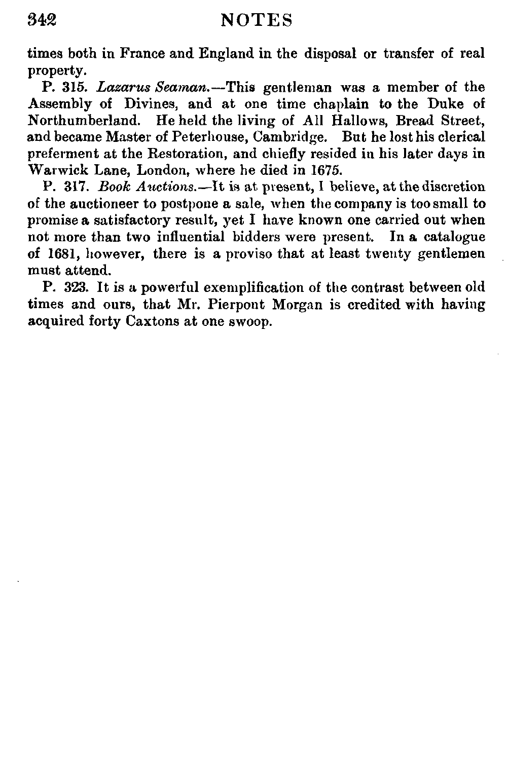 P. 323. It is a powerful exemplification of the contrast between old times and ours, that Mr. Pierpont Morgan is credited with having acquired forty Caxtons at one swoop.
